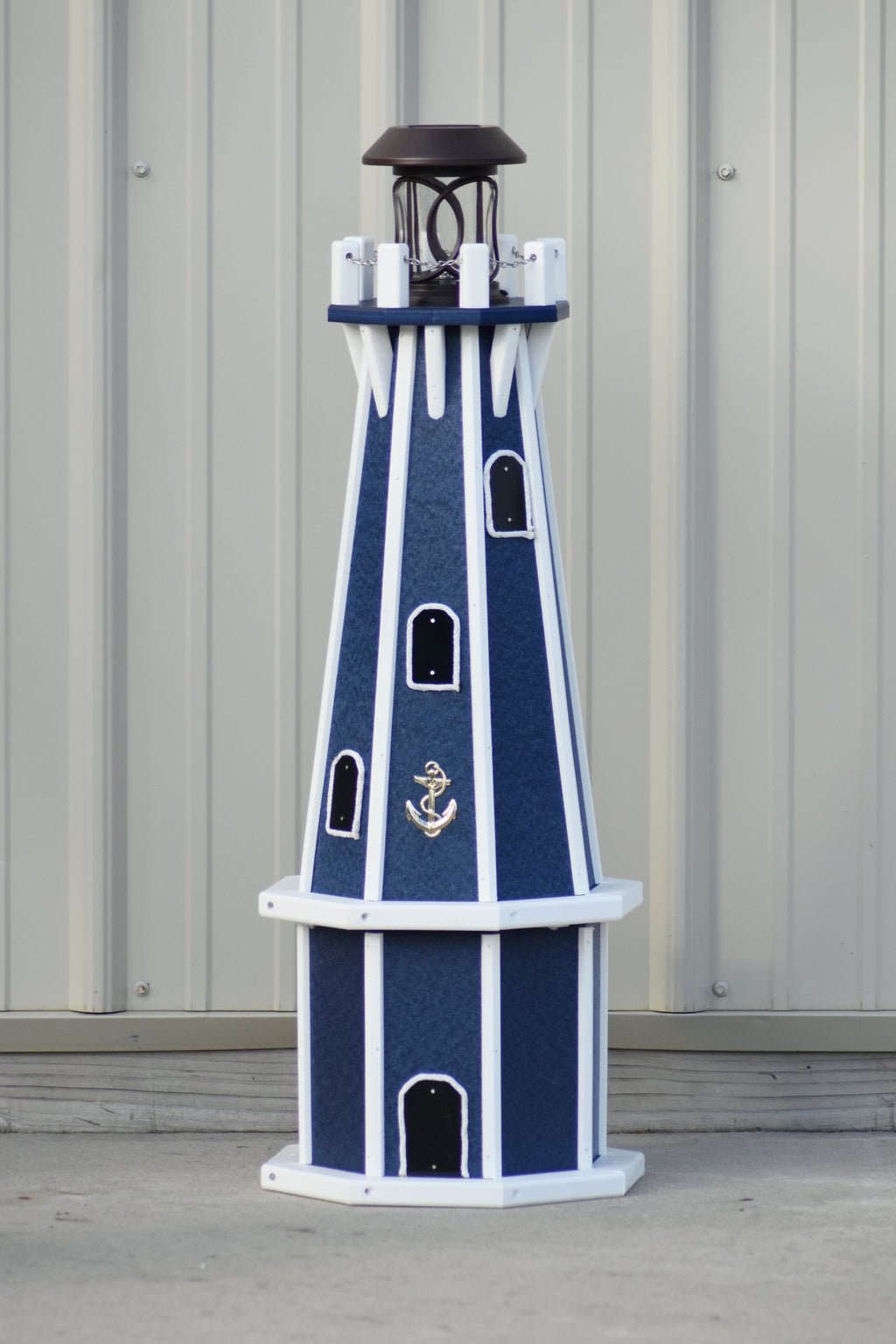 You are Looking at a 32" Solar Powered Poly Lighthouse, Patriot Blue with White Trim
