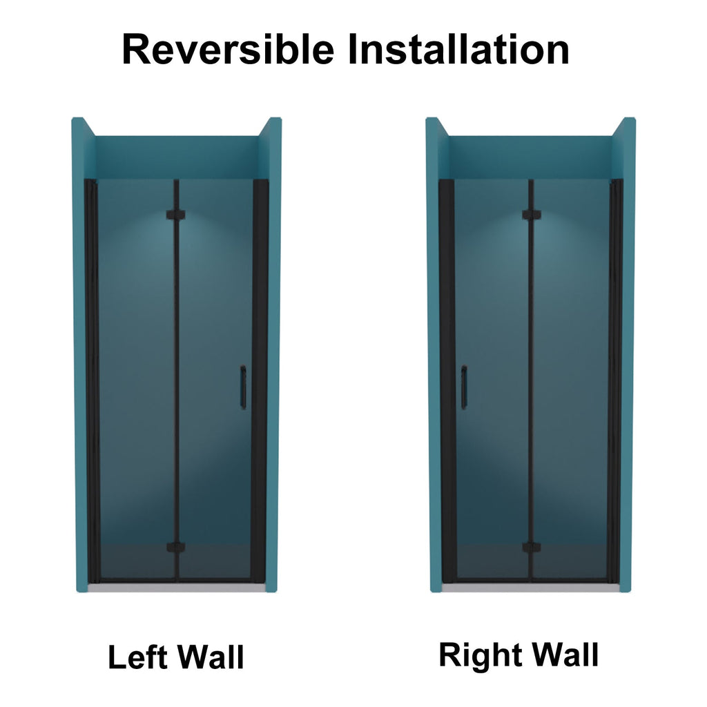 • 32*72" Bi-Fold Semi-Frameless Pivot Shower Door in Matte Black