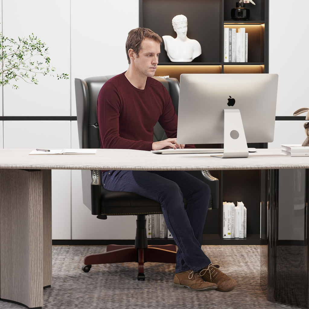 Luxurious Elegance and Timeless Design: Elevate your workspace with a touch of luxury and timeless design. Crafted with exquisite leather and attention to detail, this chair not only enhances your professional image but also complements any office decor with its sophisticated aesthetics.