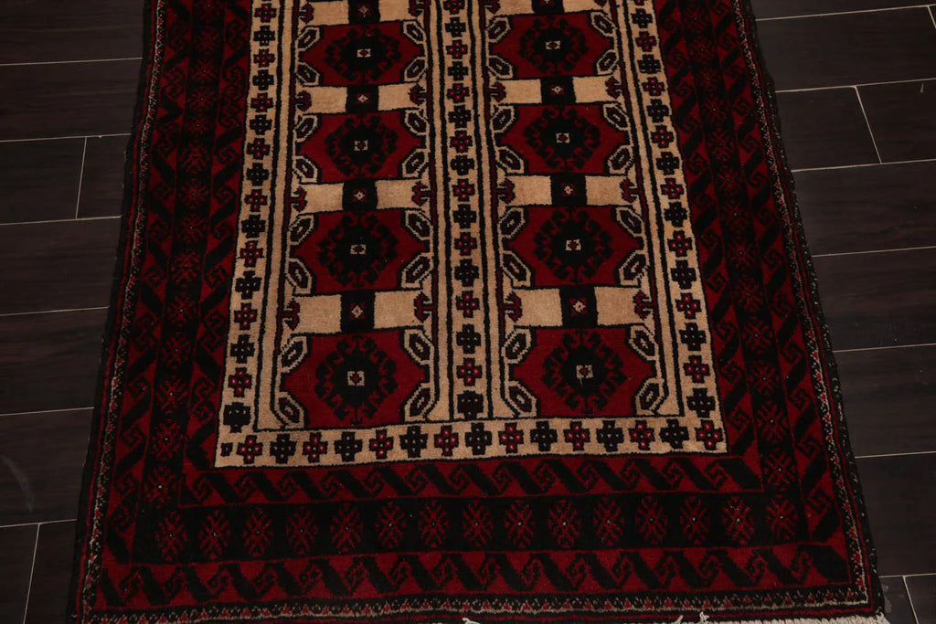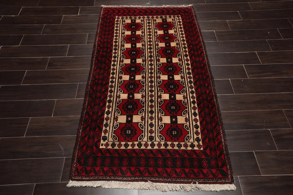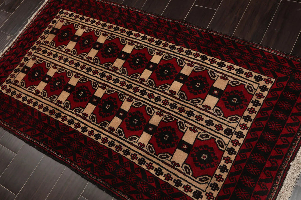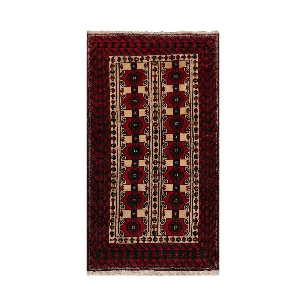 This is a beautiful Red, Charcoal & Ivory Hand Knotted Wool rug from Baluchistan. The wool not only adds to rug's durability, but also provides dirt repelling quality and thermal insulation. It is primed to add visual glamor and class to its surroundings. Its soft texture and timeless design make it ideal to enhance any space where it is placed.