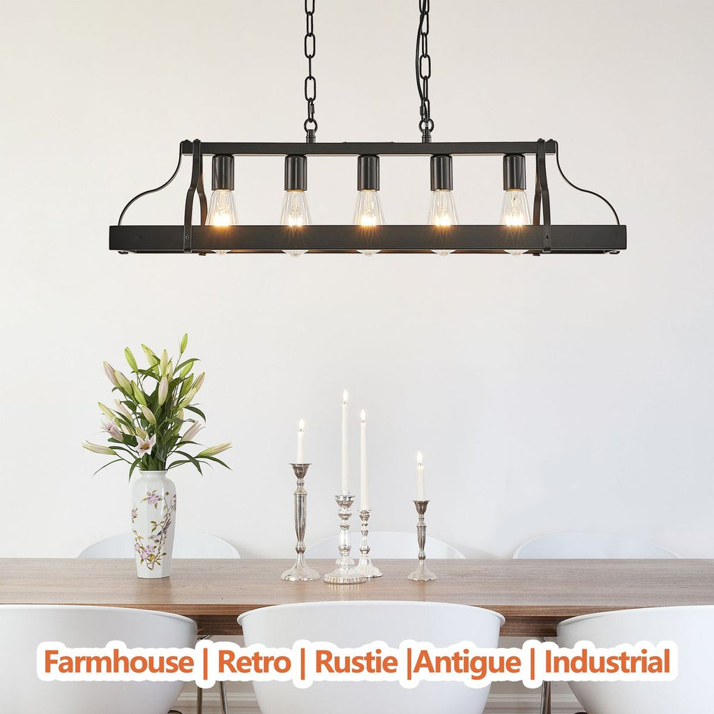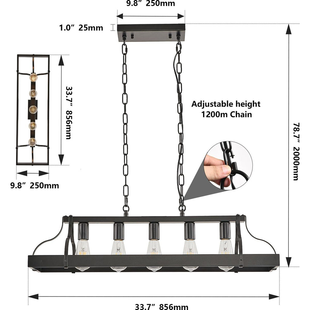 - Fashionable modern design:This 34-inch all black pendant light features an industrial style design that is simple yet modern, perfectly integrating into various home and commercial spaces such as dining rooms, kitchen islands, living rooms, or bars.