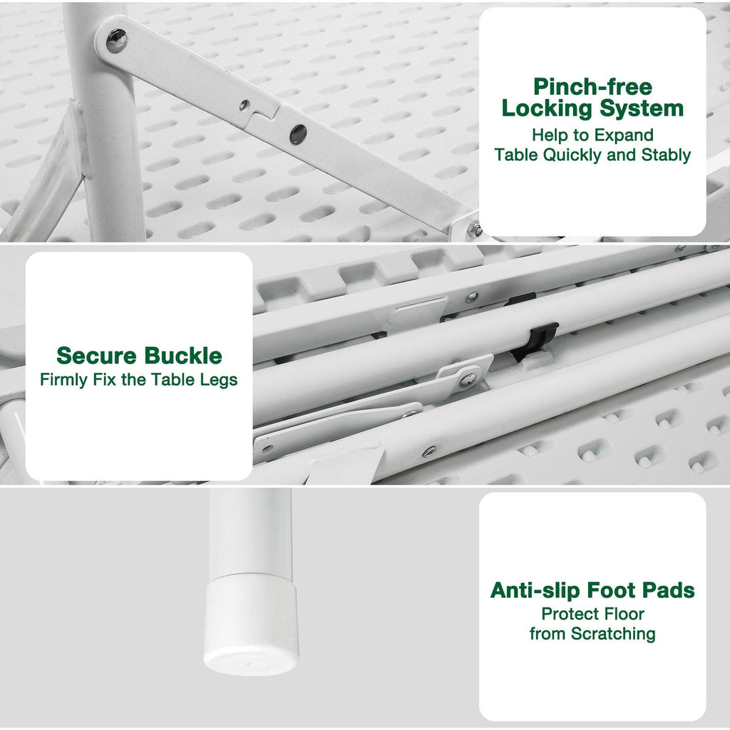 Wear-Resistant: Featured with a white top and green PVC tabletop, the folding table is not only soft and smooth to the touch but also easy to maintain.