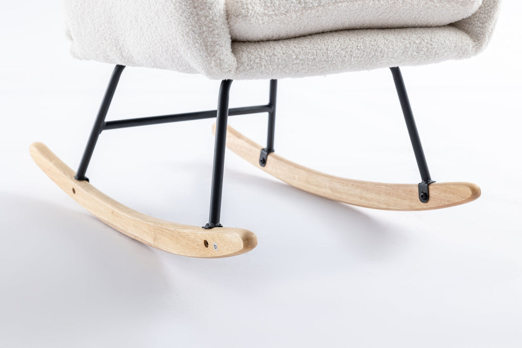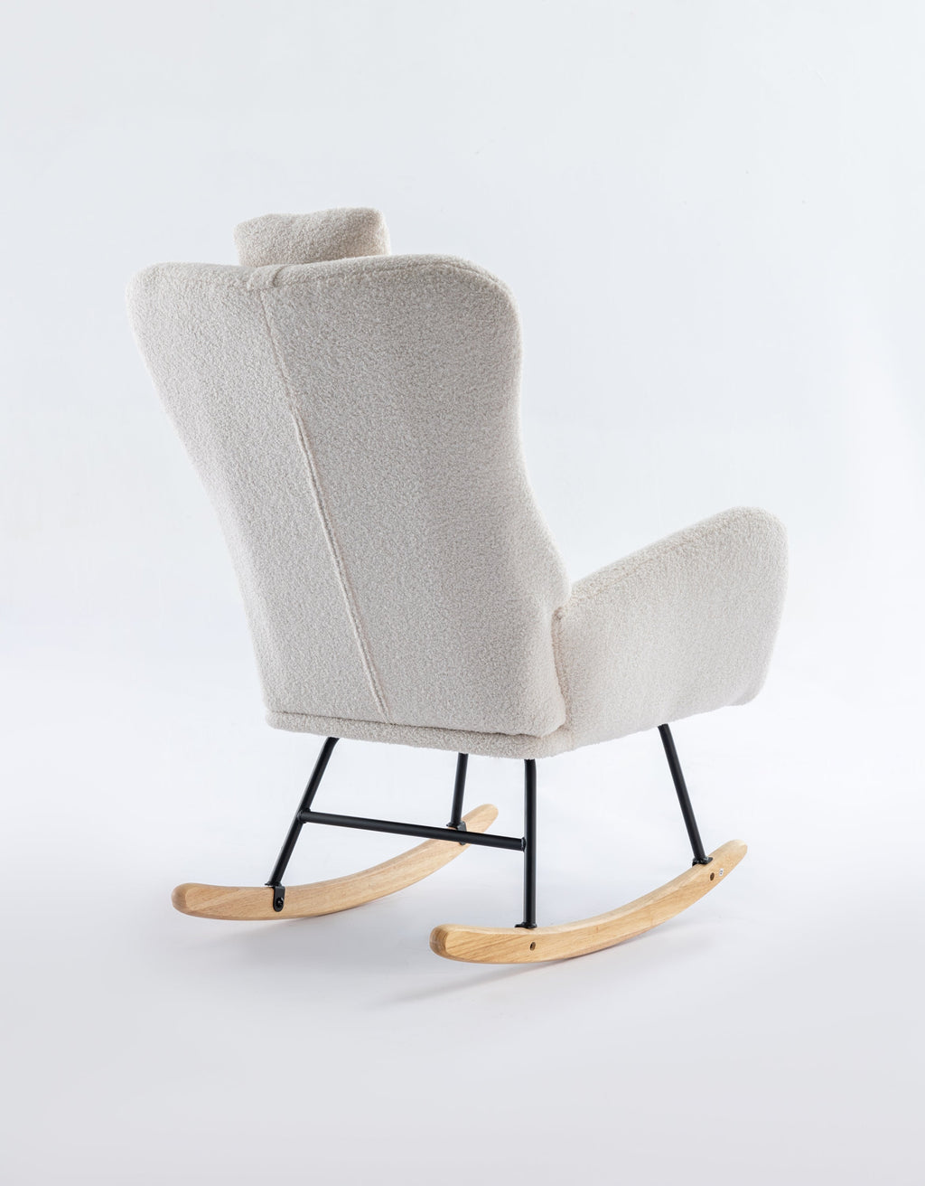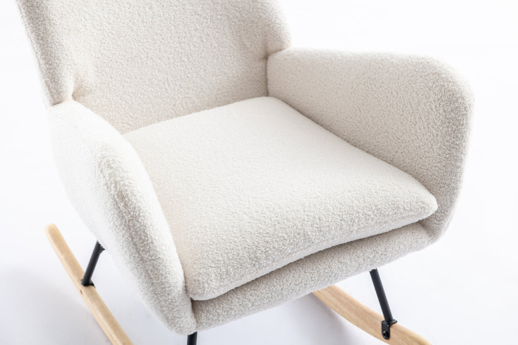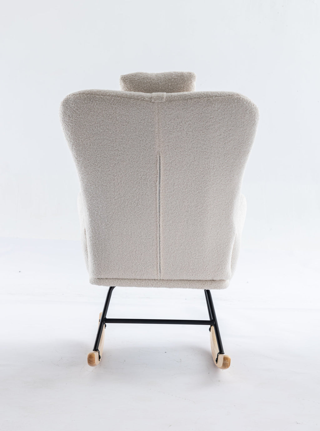 35.5 inch Rocking Chair with Pocket, Soft Teddy Fabric Rocking Chair for Nursery, Comfy Wingback Glider Rocker with Safe Solid Wood Base for Living Room Bedroom Balcony (white)