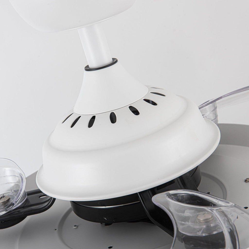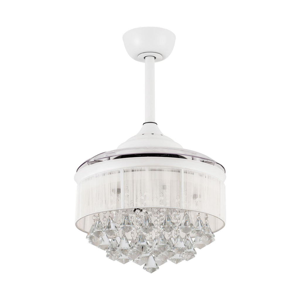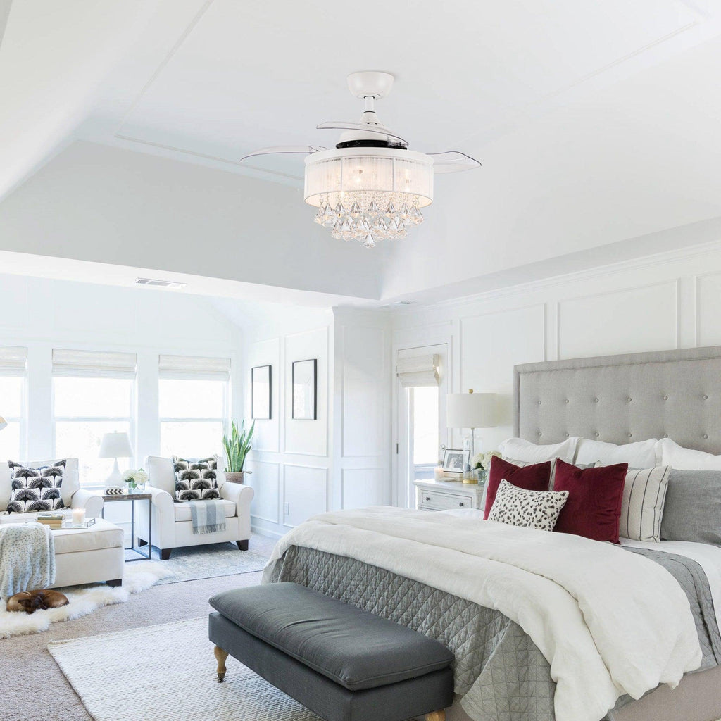 You will be shocked at this modern yet traditional chandelier that doubles as a fan The perfect combination of glam and function. It has an independent light. The blades retract when the fan is not in use. How cool is it that The crystals are beautiful and sparkly? Don't worry, the crystals do not move or make noise when the fan is on. It is perfect for your bedroom.