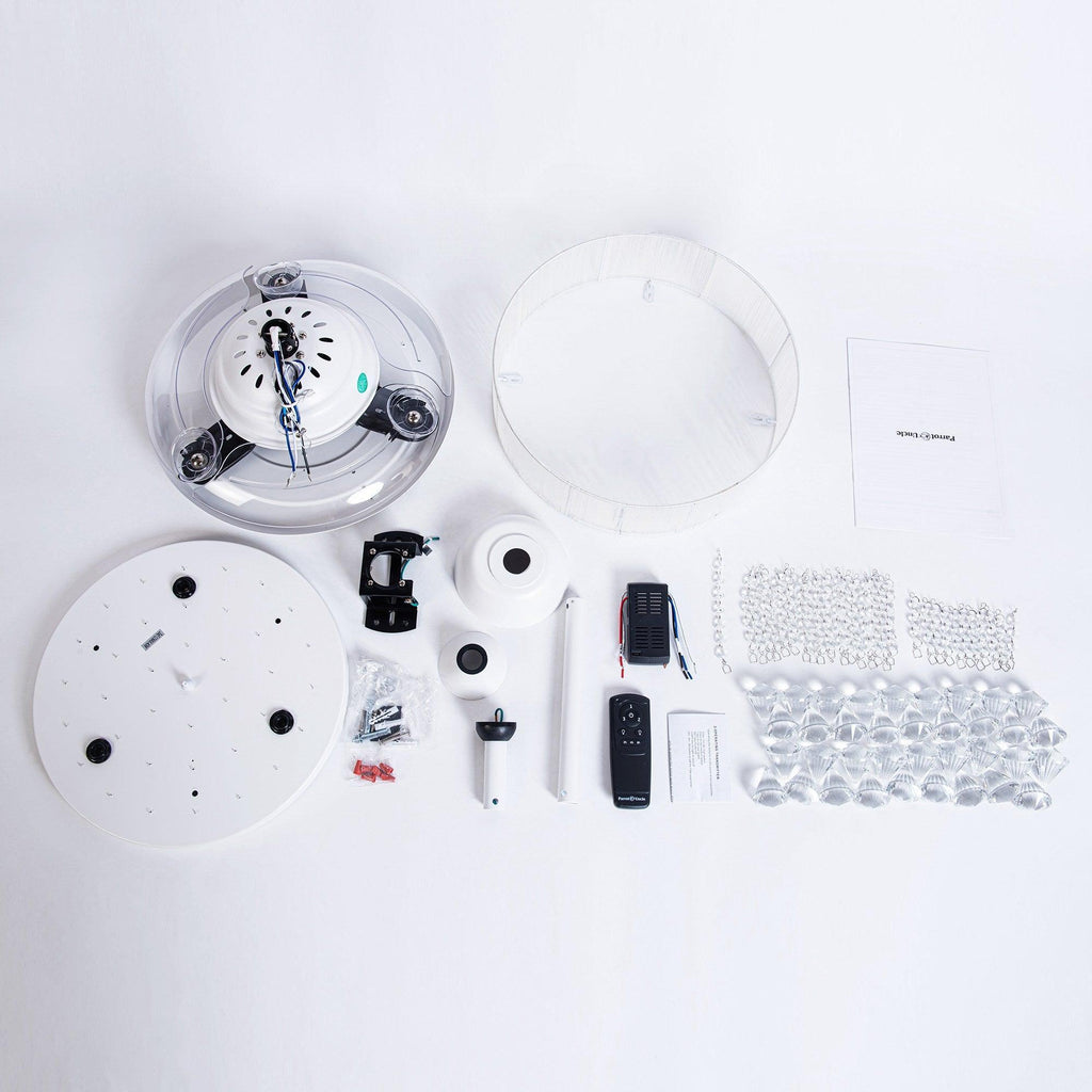 | 36” | Metal, Plastic, Crystal | D1"-L4"&L10" | 3*PC Blades | 3*E12 Lamp holders no bulbs | AC Motor | Remote control | 3 | Yes | Dry location |