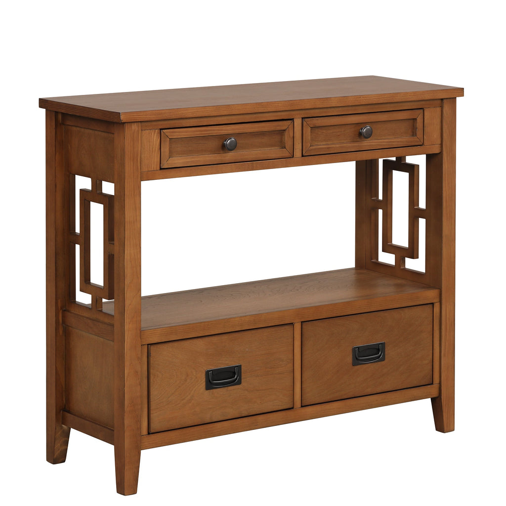 36" Farmhouse Pine Wood Console Table Entry Sofa Table with 4 Drawers & 1 Storage Shelf for Entryway Living Room Bedroom Hallway Kitchen (Brown)
