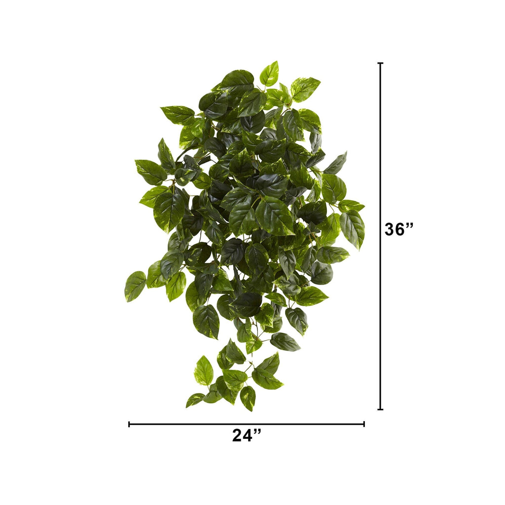 Enhance your outdoor spaces today with the artificial pothos hanging plant set of 2. Inspired by nature, you’ll notice the details on the lush, green leaves with patterns similar to nature. Crafted from high-quality materials, feel free to bend the branches to fit in your space. Manufactured through a special process, place this piece outdoors, it has a UV coating. Standing 36-In from top to bottom, hang in any area. Great for a pergola, backyard, front porch or patio.
