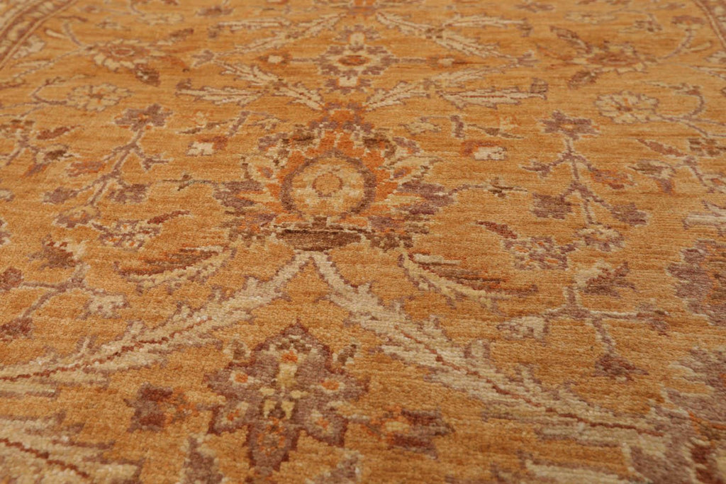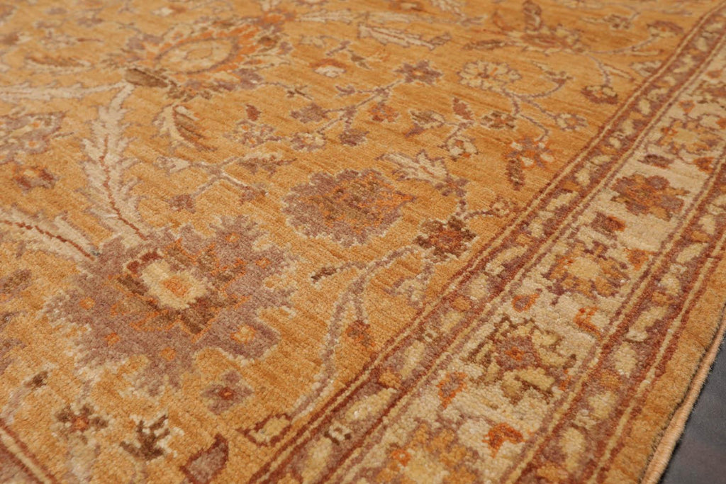 Story Behind the Art: Hand-knotted rugs are Pakistan's second-largest cottage and small industry that began as early as the 11th century under the Mughal rule. The craftsmen have the capacity to produce any type of rug using all the popular motifs of guls, medallions, paisleys (botehs), traceries, and geometric designs in various combinations. While the "stone washes" are used to fade and soften colors, the Peshawar style is characterized by a thinly sheered pile, large print designs, and most predominantly, their antique ivory and sometimes golden tones.