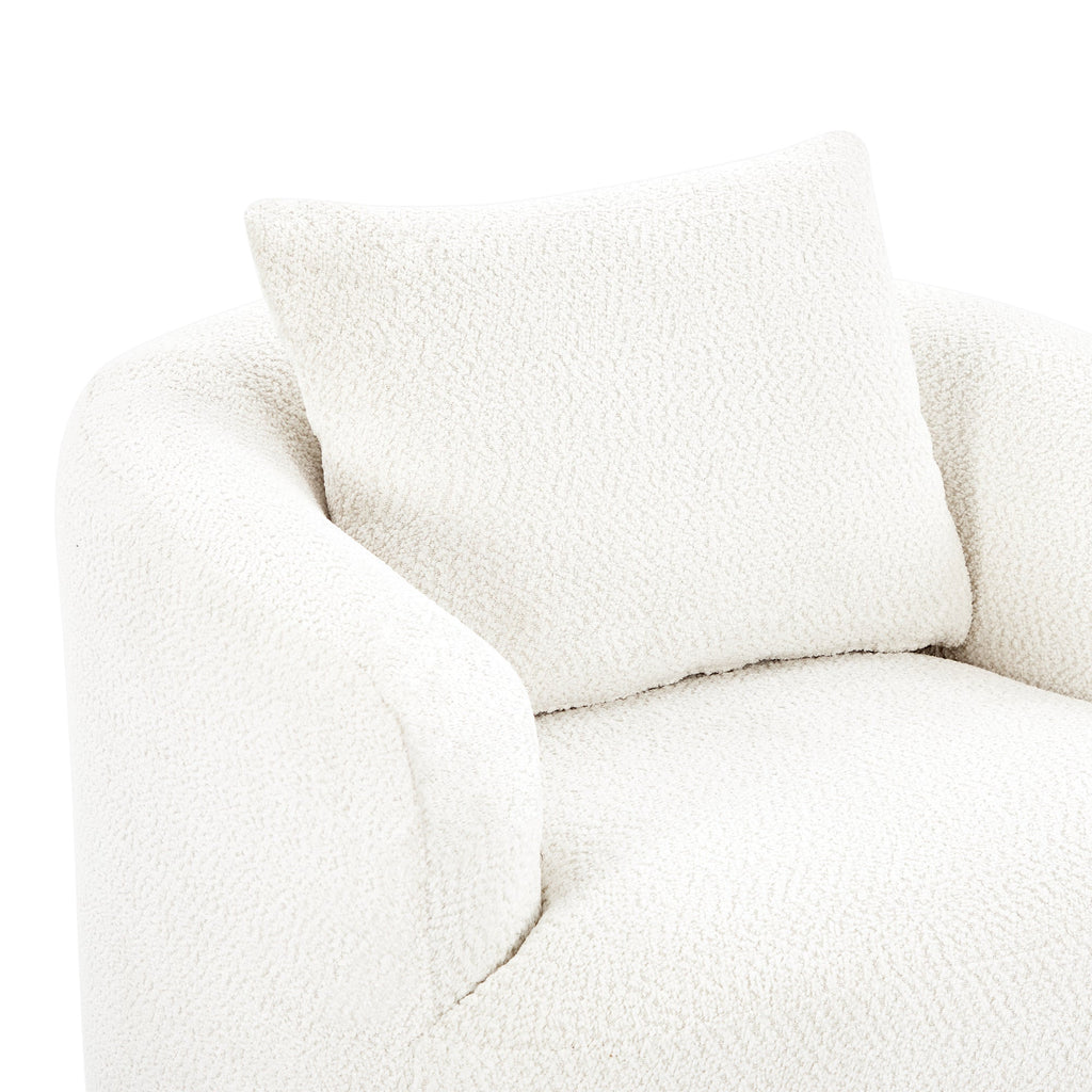 - Comfortable and Spacious Cushioning – This swivel chair features a pocket spring cushion system paired with high-density foam and soft boucle fabric, offering an exceptionally comfortable and supportive seating experience. With a seat depth of 18.9 inches and a width of 38.2 inches, it provides ample space to relax. These combined elements ensure lasting comfort and support, even during extended periods of sitting.