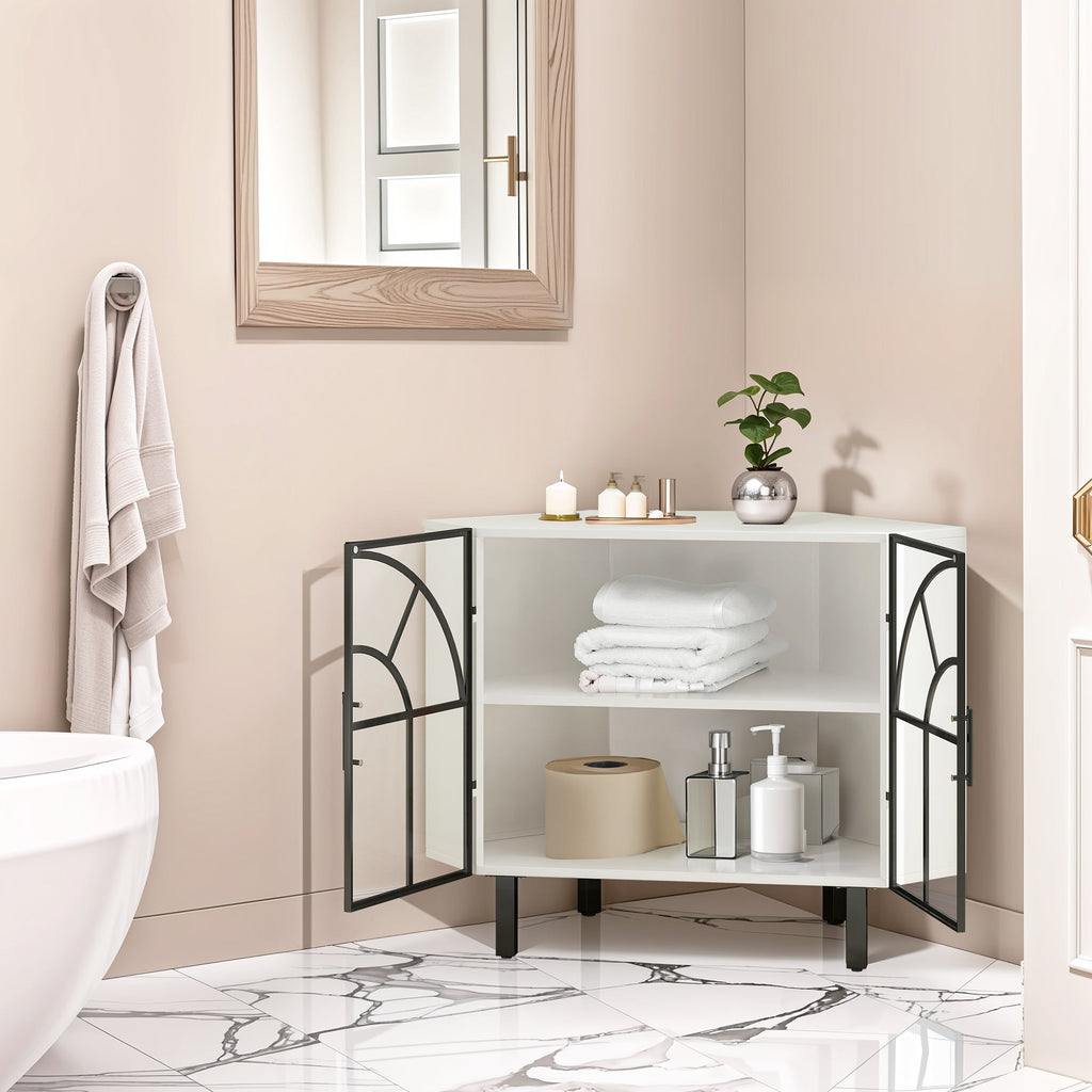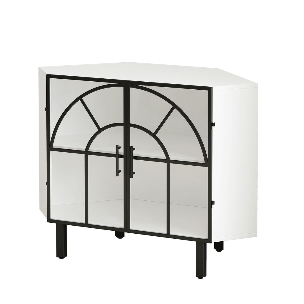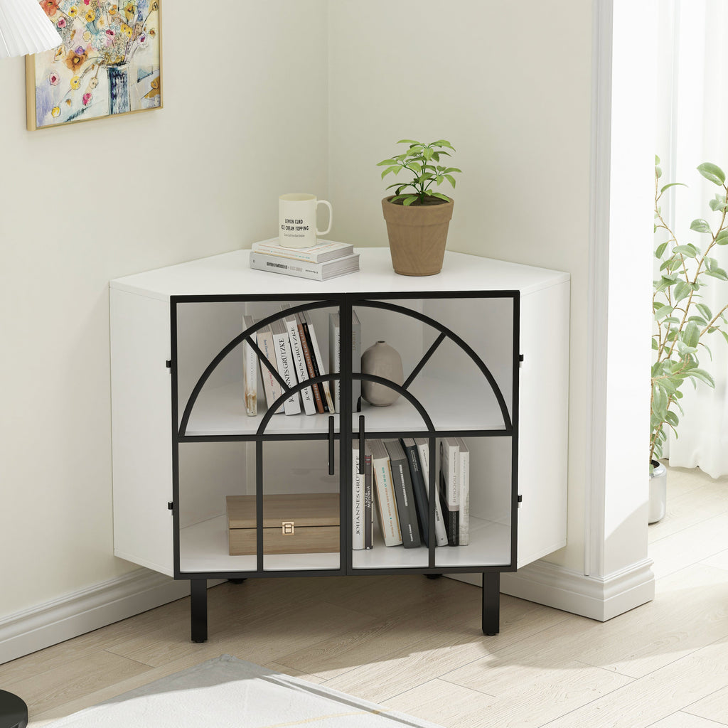37.40"Glass Two-Door Hexagonal Corner Cabinet, for Corner of Living Room, Hallway, Study and Other Spaces, White