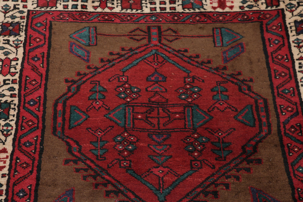 This is a beautiful 3'7"x7'9" Burgundy, Brown, Beige, Rose, Aqua, Multi Color Hand Knotted Semi Antique Iranian Sarab Persian Area Rug. Its elegant style is easy to decorate with and perfect for living room, dining room, bedroom or anywhere in the resident.