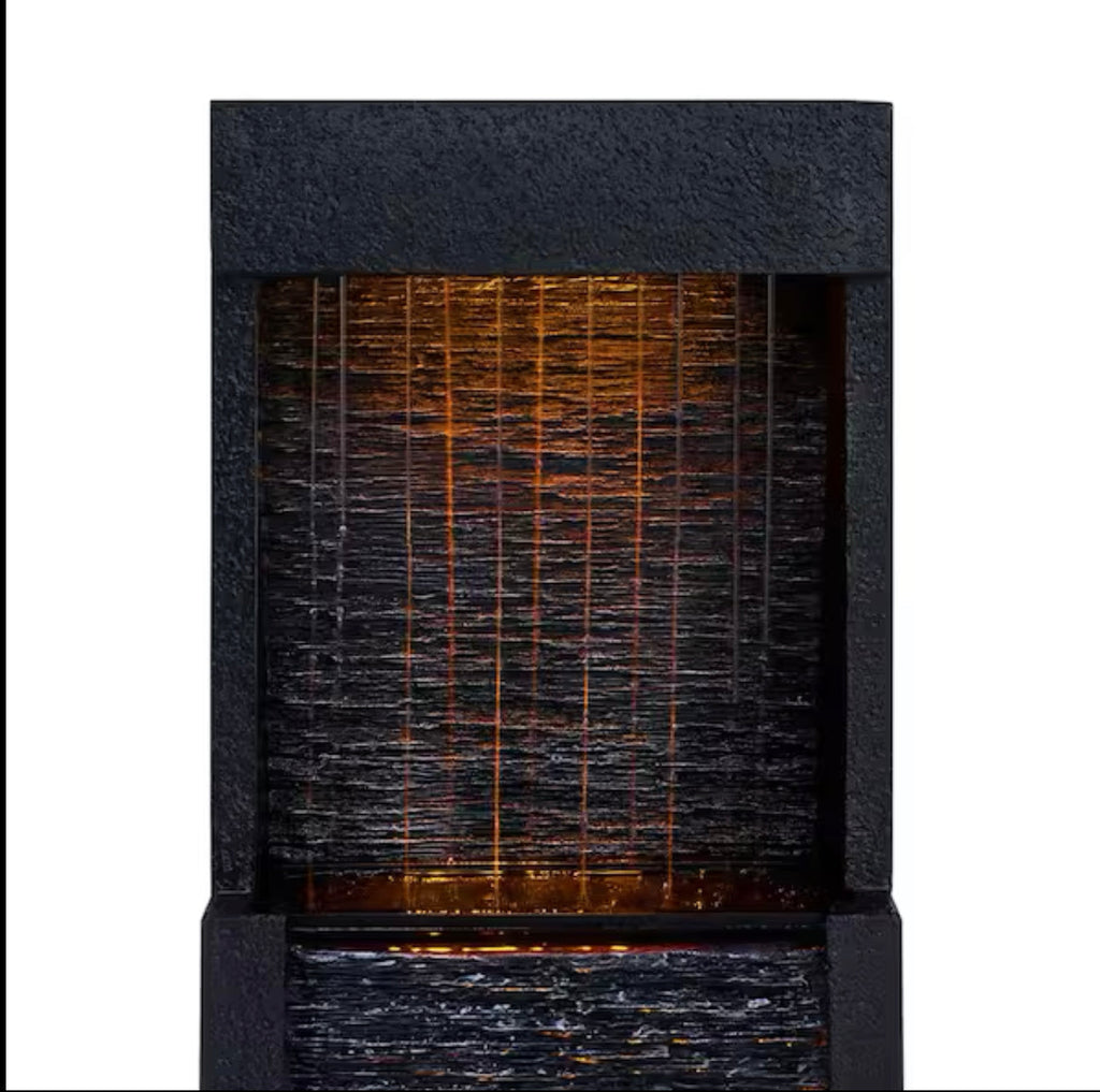 38 in. Tall Outdoor Gray Slate Solar-Powered Waterfall Fountain with LED Lights