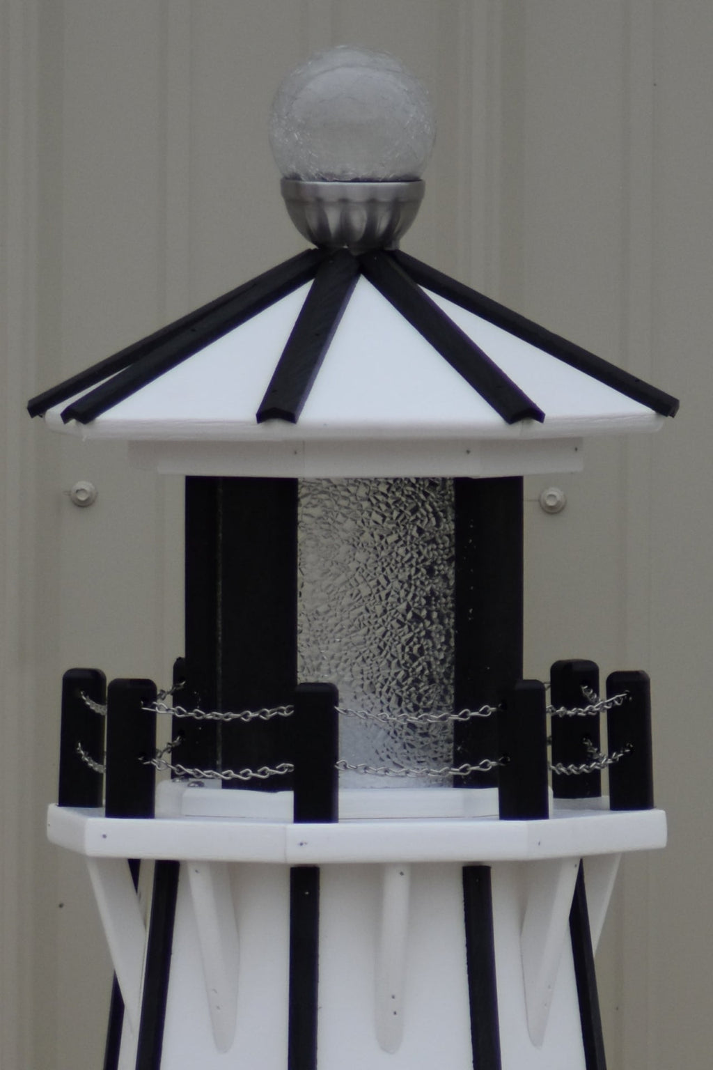 Pictured is a 39" Poly lighthouse, White with Black Trim