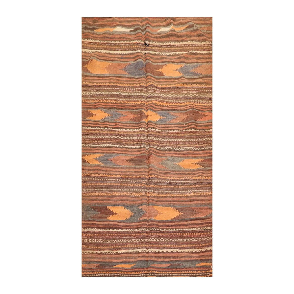 Story Behind the Art Bold, distinctive patterns; brilliant colors; affordability-these are some of the characteristics that explain the overwhelming popularity of the exquisite, flatwoven textiles from the Near and Far East known as kilims. Kilim designs are made by interweaving the variously colored wefts and warps, thus creating what is known as a flatweave. Kilim patterns are created by winding the weft threads, which are colored, backwards and forwards around pairs of warp threads. The motifs on kilims woven in this way are constrained to be somewhat angular and geometric. Kilims are prized by collectors for the crispness of their decoration.