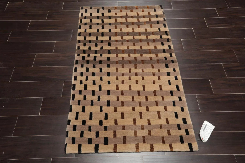 3'x5' Hand Knotted Tibetan Wool and Silk Tibetan Transitional Oriental Area Rug Tan, Beige Color