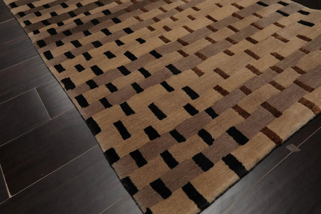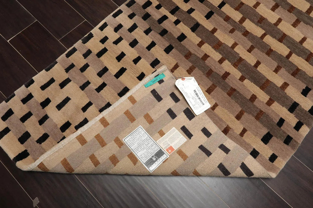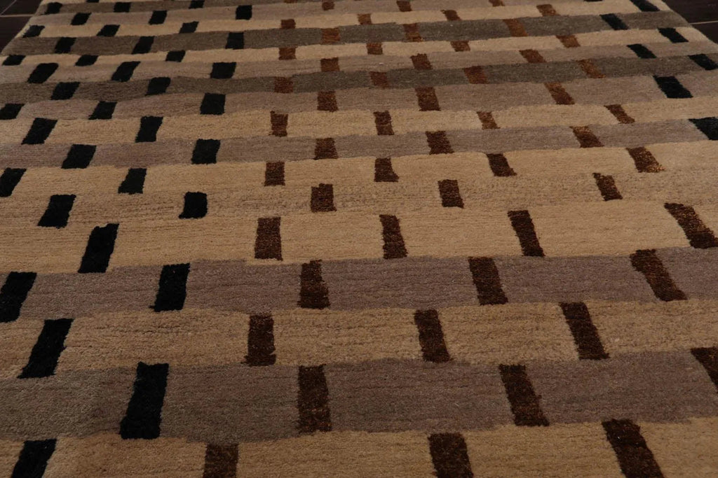 This is a beautiful Tan, Beige, Gray Color Tibetan design Hand Knotted, Tibetan Oriental Wool and Silk Rug.
