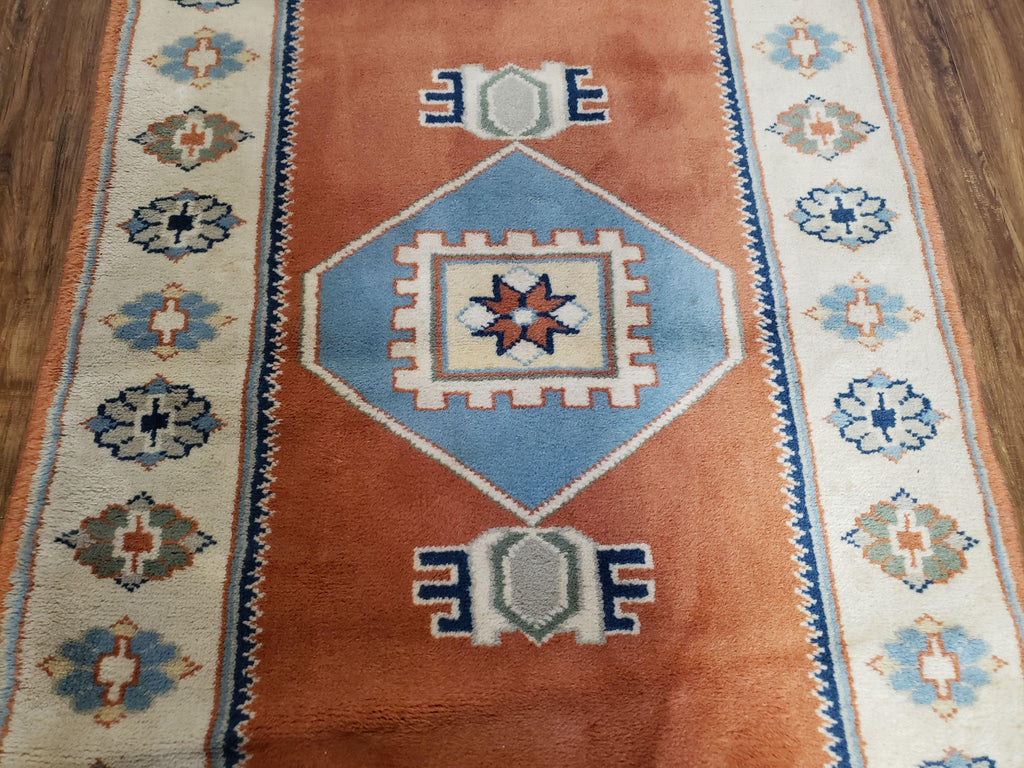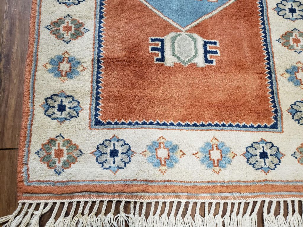 3x5 Handmade Vintage Turkish Area Rug Wool Kazak Carpet 3'1"x4'5" Red Beige