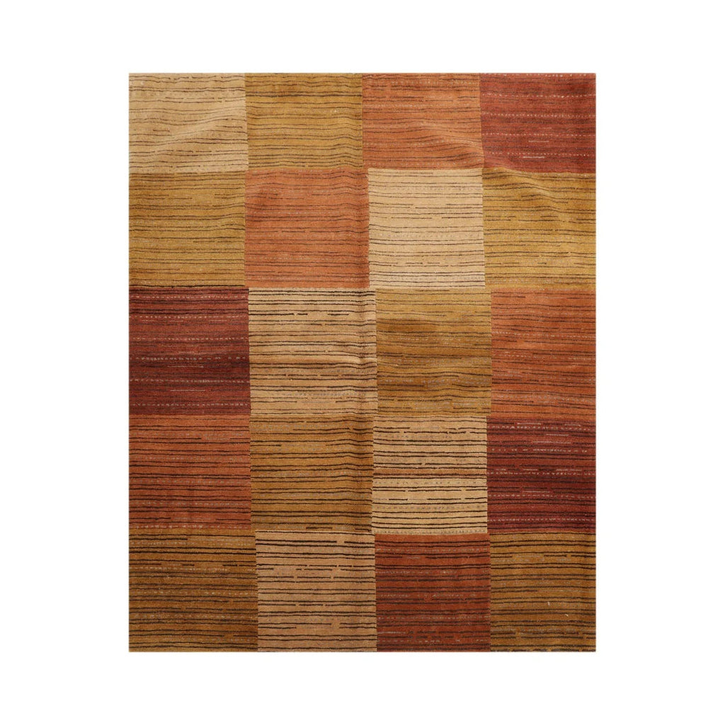 This is a beautiful Rust, Gold, Tan, Brown, Chocolate Multi Hand Knotted Michaelian & Kohlberg Wool Rug. The wool not only adds to rug's durability, but also provides dirt repelling quality and thermal insulation. The color block design with series of lines across it creates a look that is both modern and contemporary. Its elegant style is easy to decorate with and perfect for living room, dining room, bedroom or anywhere in the residence or office.