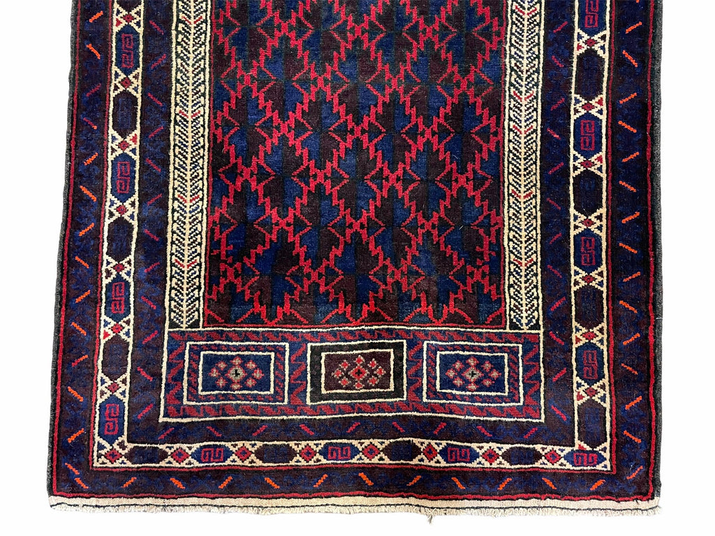 3x5 Vintage Handmade Tribal Wool Rug Balouchi Prayer Rug Afghan Rug Red Blue Wow