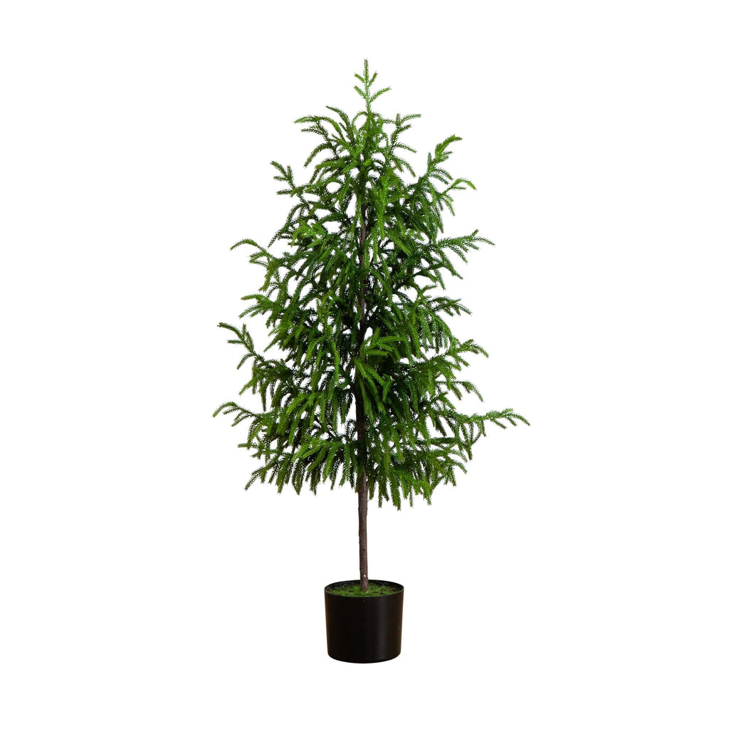 Evoke hints of the outdoors on bare surfaces with the help of this artificial Norfolk Pine tree. A gorgeous, lush tree inspired by the verdant Pacific coastline of New Zealand, it boasts lush, green foliage for a robust, full appearance, yet requires no maintenance at all. The branches are made of high-quality materials and are bendable to fit any space. Enhance the your space with the artificial Norfolk pine by adding twinkling fairy lights or colorful ribbon garlands. Standing 4' from a nursery planter, create your dream home today by adding to a base of your choice. Enhance any space today no matter your decor style and spread cheer.