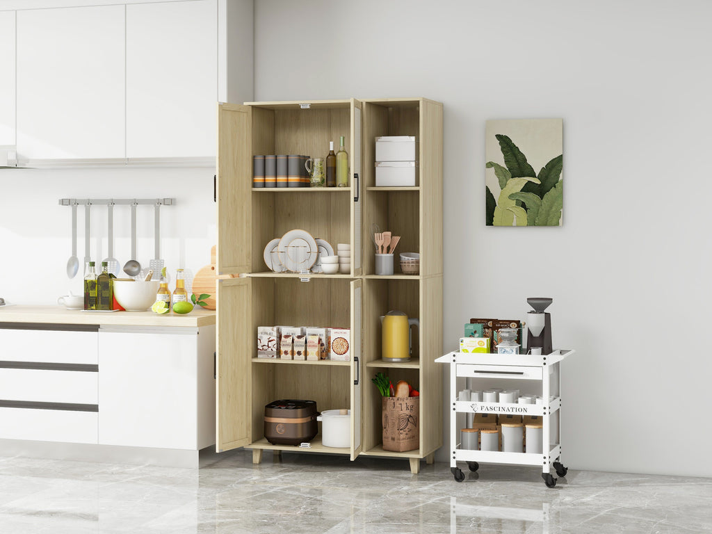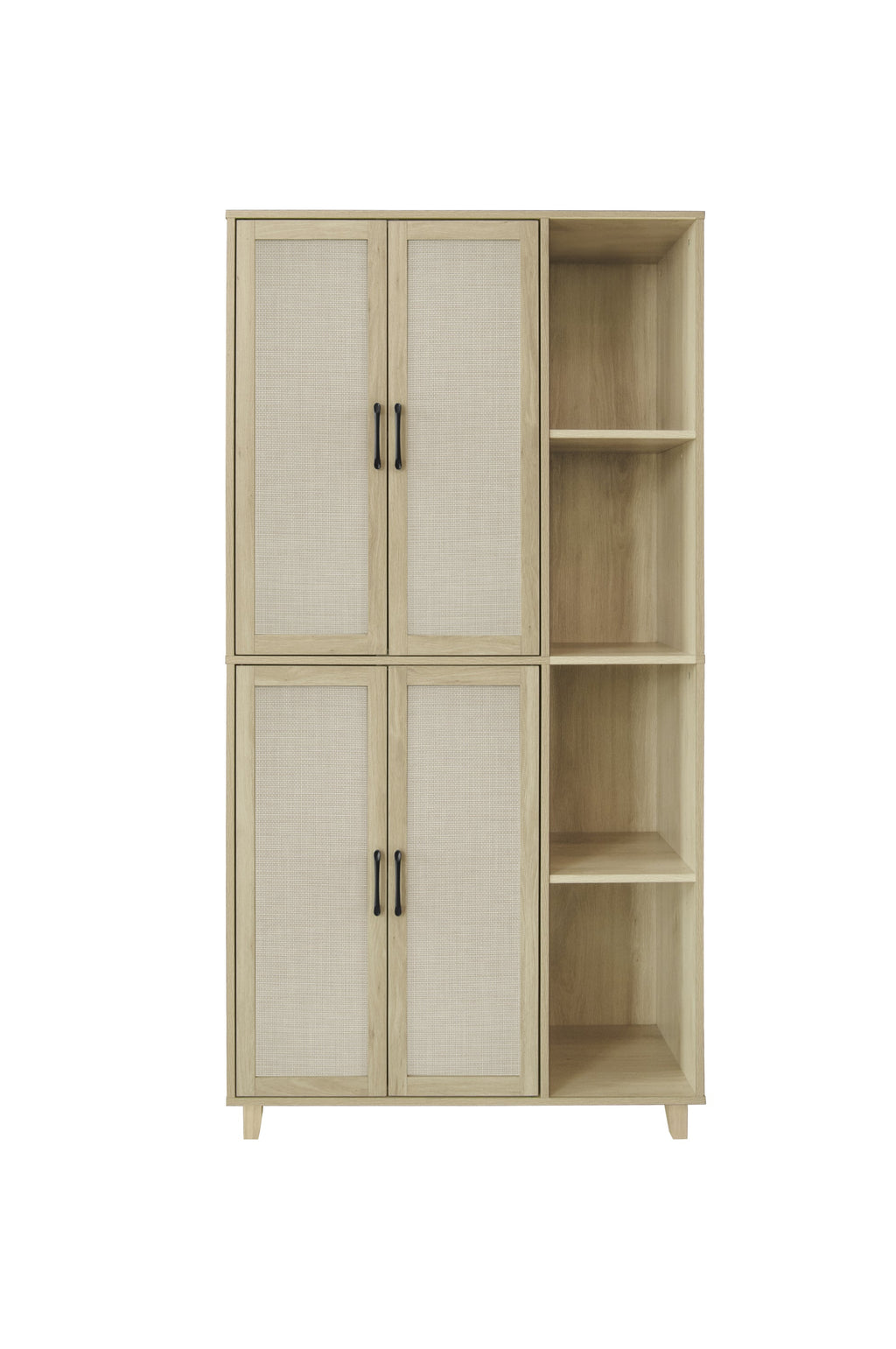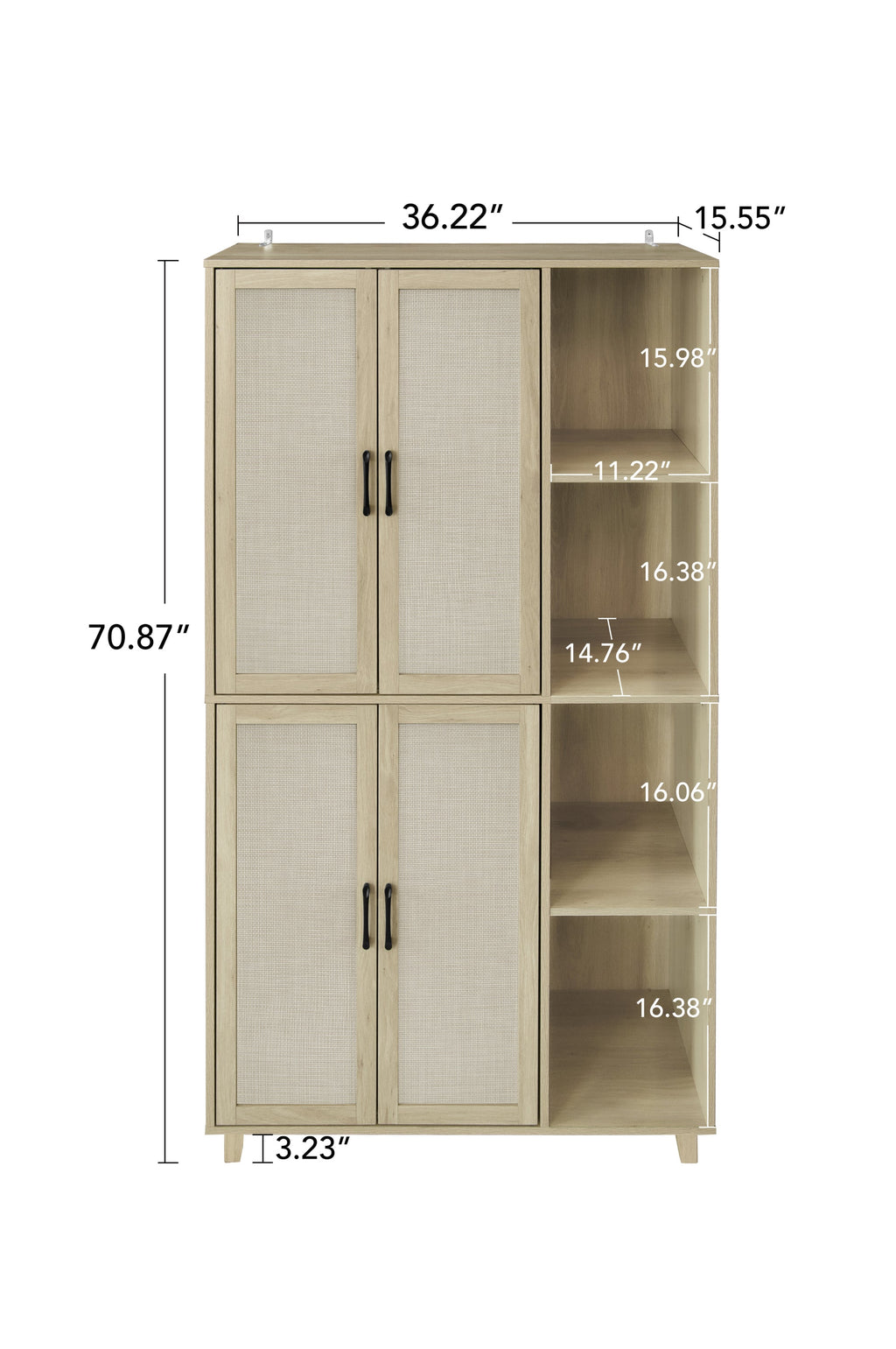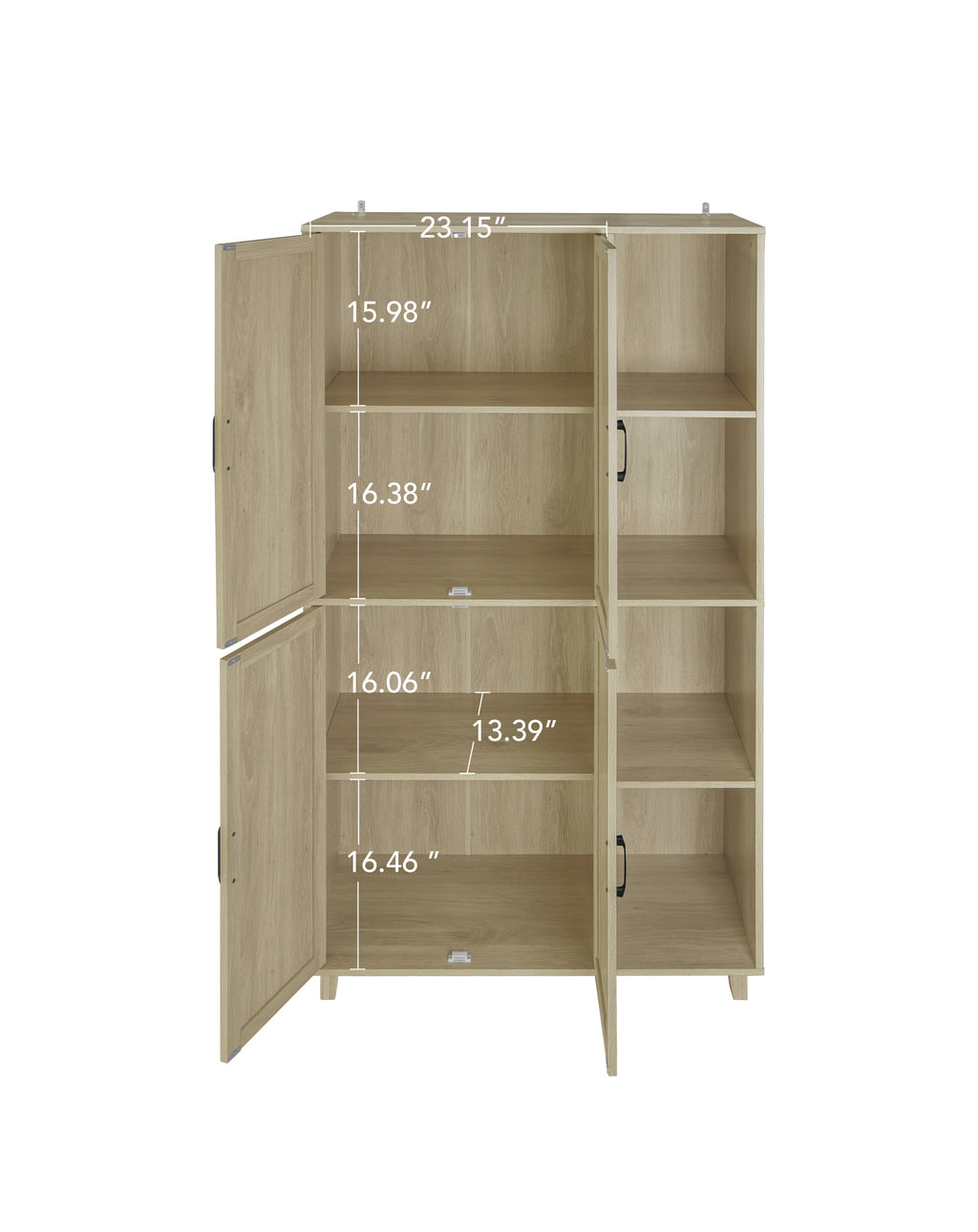 4 Door Cabinet with 4 Shelves with 4 Adjustable Inner Shelves, Storage Cabinet