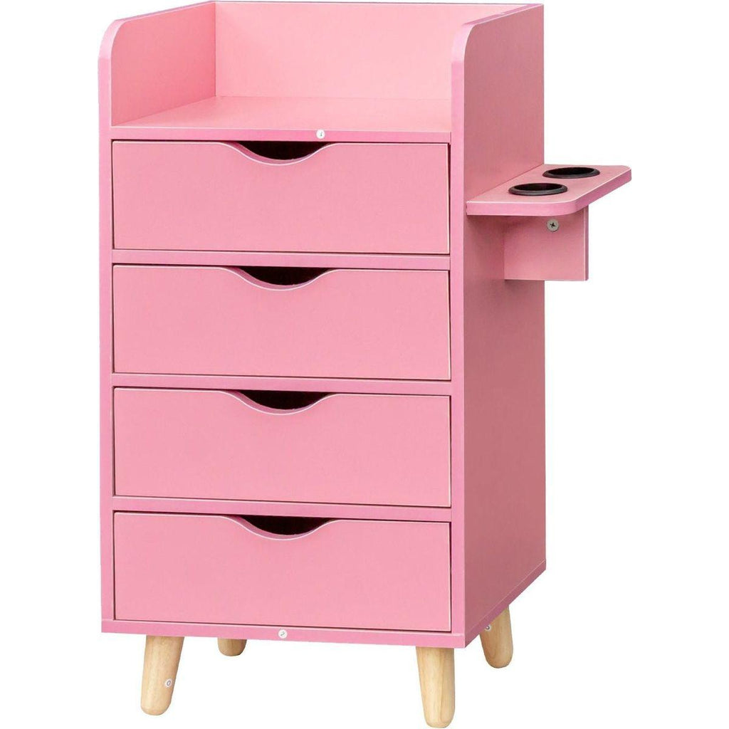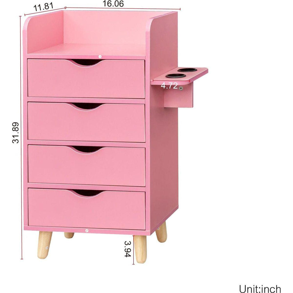 - 4 -Layer Salon Storage Cabinet,Beauty Barber Salon Styling Station Organizer Equipment,Hair Stylist Station Set with 2 Hair Dryer Holders,4 Drawers and Raised Table Legs