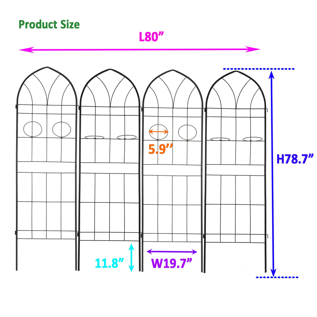 4 Pack Metal Garden Trellis 78.7" x 19.7" Rustproof Trellis for Climbing Plants Outdoor Flower Support Black