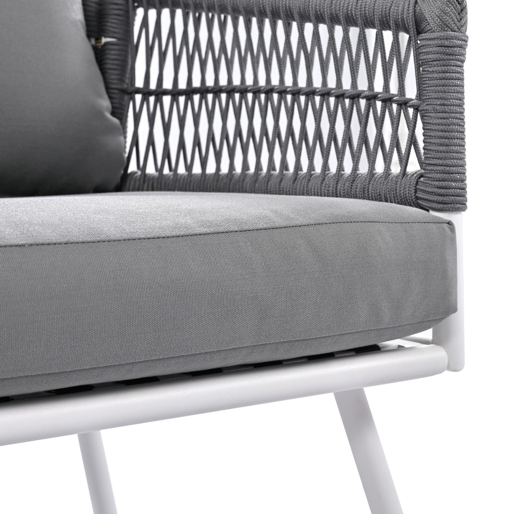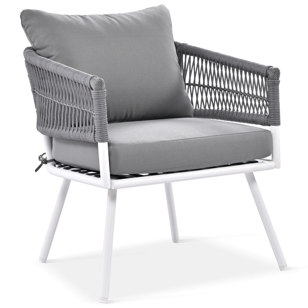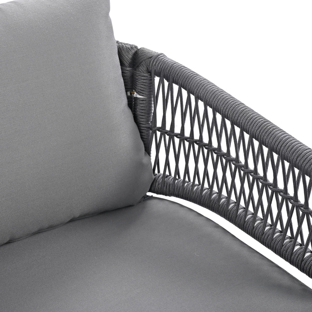 • [Handmade Rope Weave] Our 4-piece boho patio furniture set is meticulously crafted from delicate PP rope, boasting a visually striking design and exceptional comfort. In comparison to conventional rattan materials, the thoughtfully engineered frame and rope are specifically designed to withstand even the harshest weather conditions. The handmade details of this material allow this set to blend seamlessly with your outdoor decor.