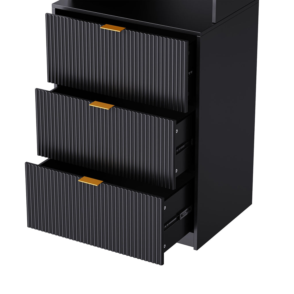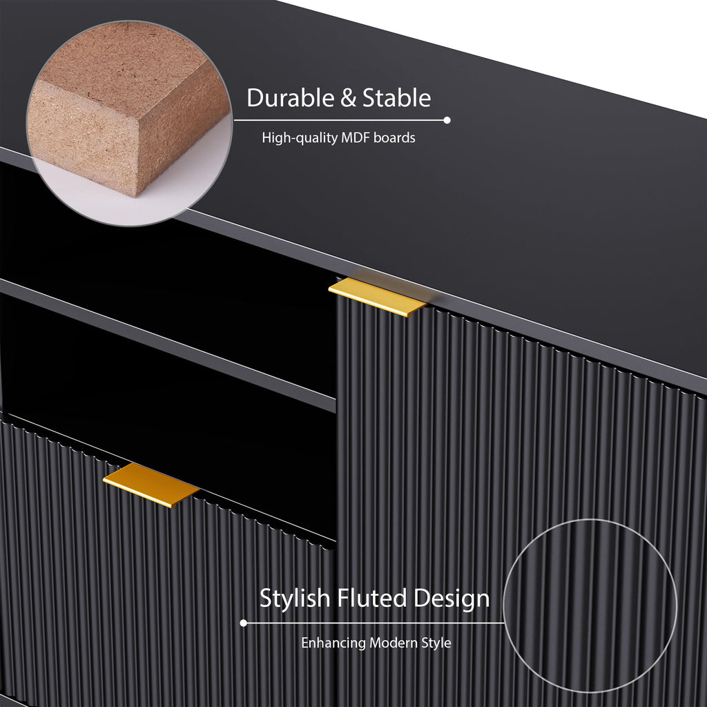 The surface of this set is intricately designed with flute, adding a stylish and modern touch to the overall aesthetic. Constructed with high-quality MDF boards to guarantee durability and longevity.