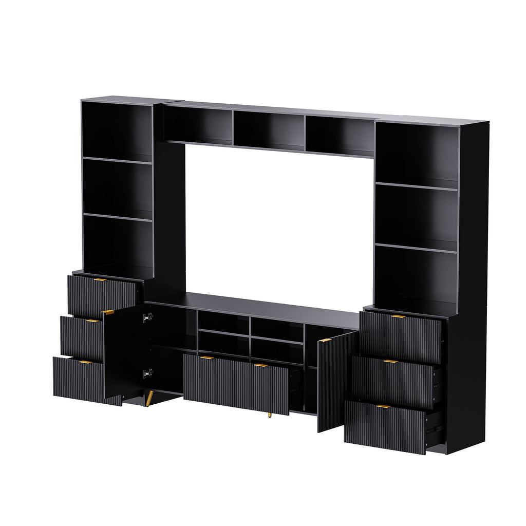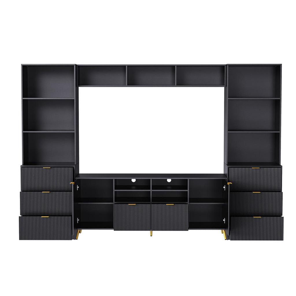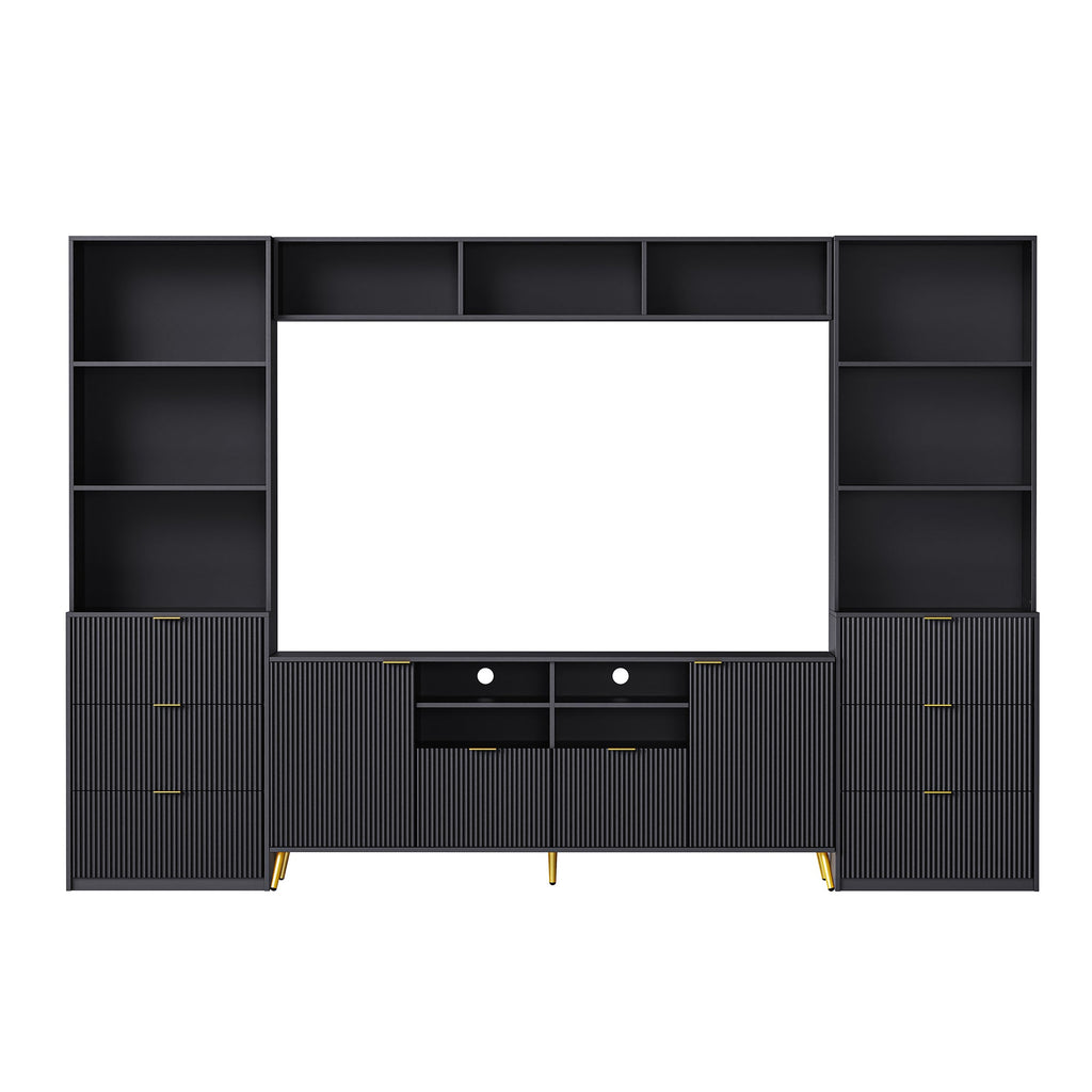 4-Piece Entertainment Wall Unit with 13 shelves,8 Drawers and 2 Cabinets, Multifunctional TV Stand Media Storage Cabinet with Fluted Line Surface for Living Room, for TVs Up to 70"