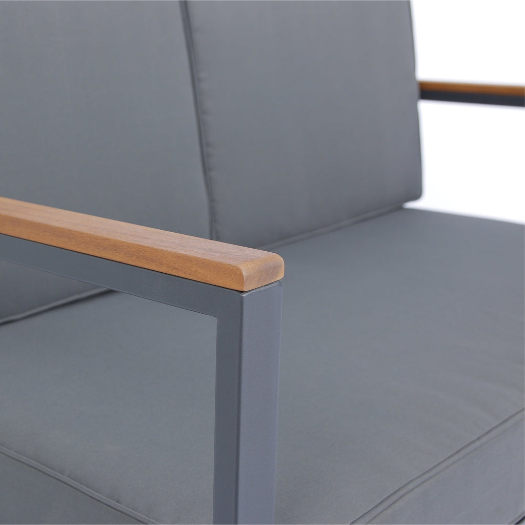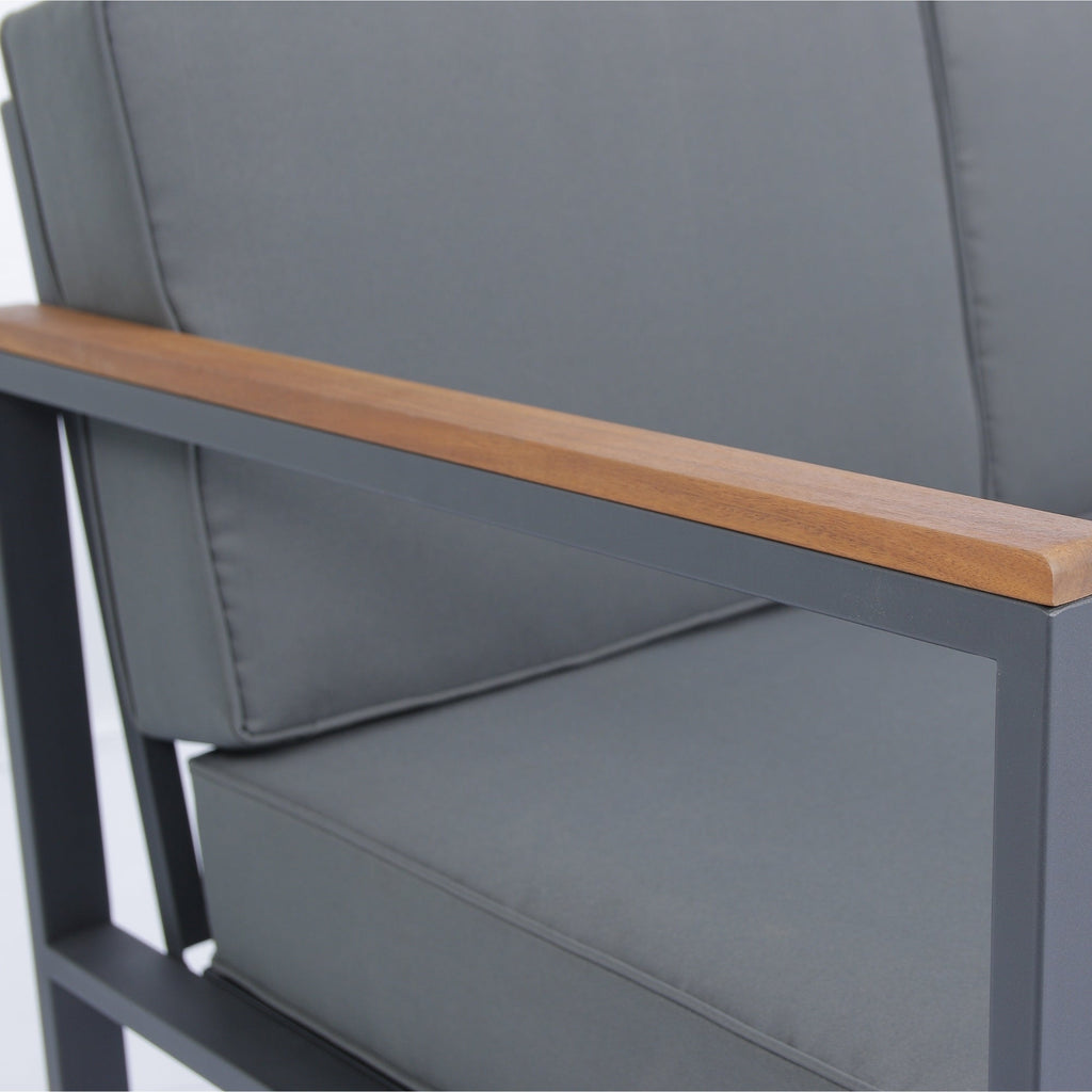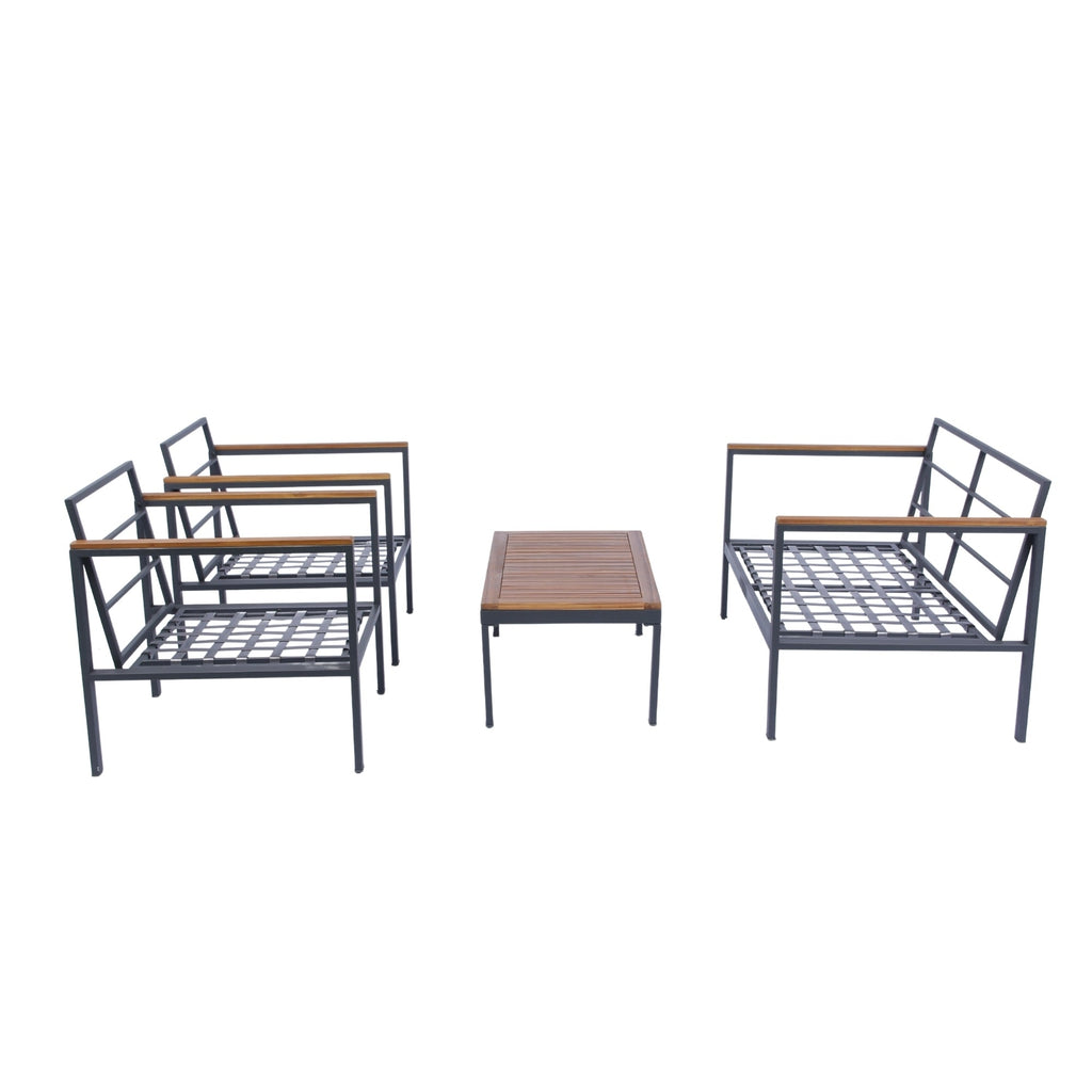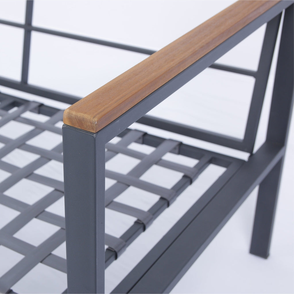 The table top and armrests of this patio furniture set are all made of acacia wood. It enhances the natural visual effect and improves the comfort of touch