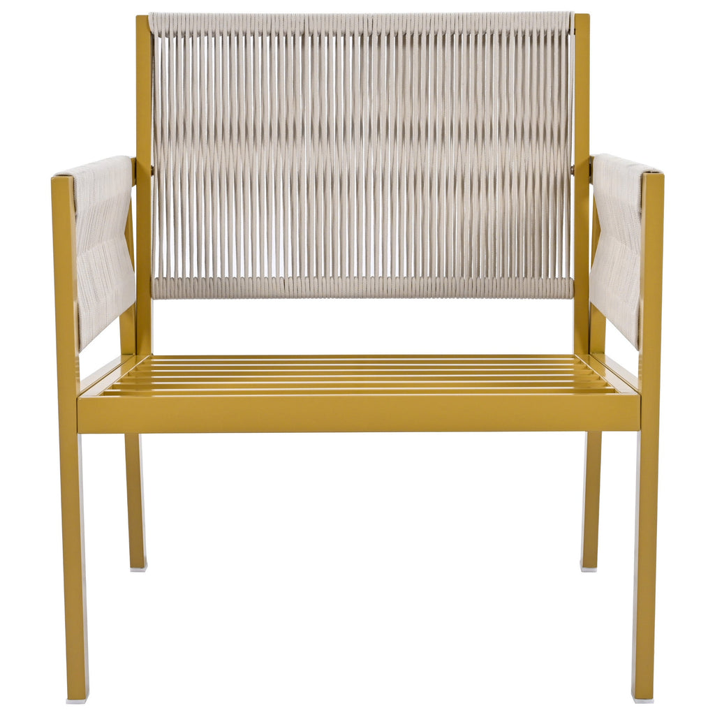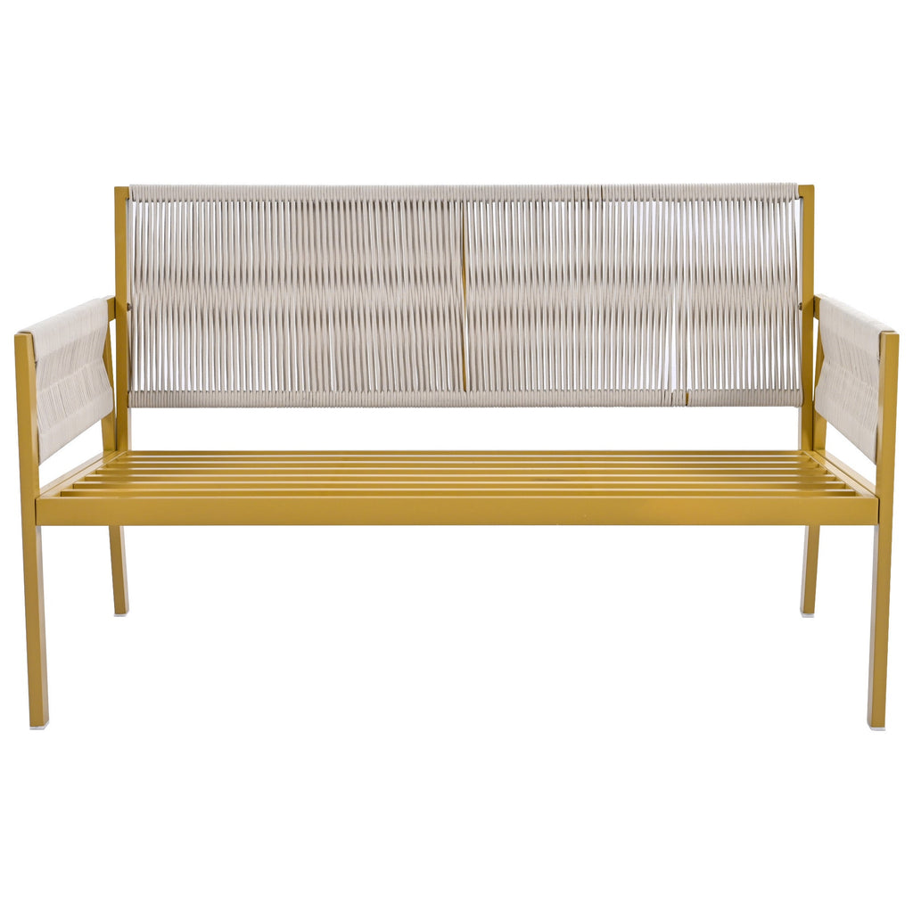 Summary This 4-piece set will give your outdoor space a fresh look that combines modern patio design with classic coastal farmhouse style. It includes one loveseat, two armchairs, and a rectangular Tempered Glass coffee table - all made from solid metal that's resistant to weather and water damage. The seating features open silhouettes with inviting arms and backs woven from rope for an added touch of natural charm. Plus, the machine-washable covers make clean-up after gatherings super easy!
