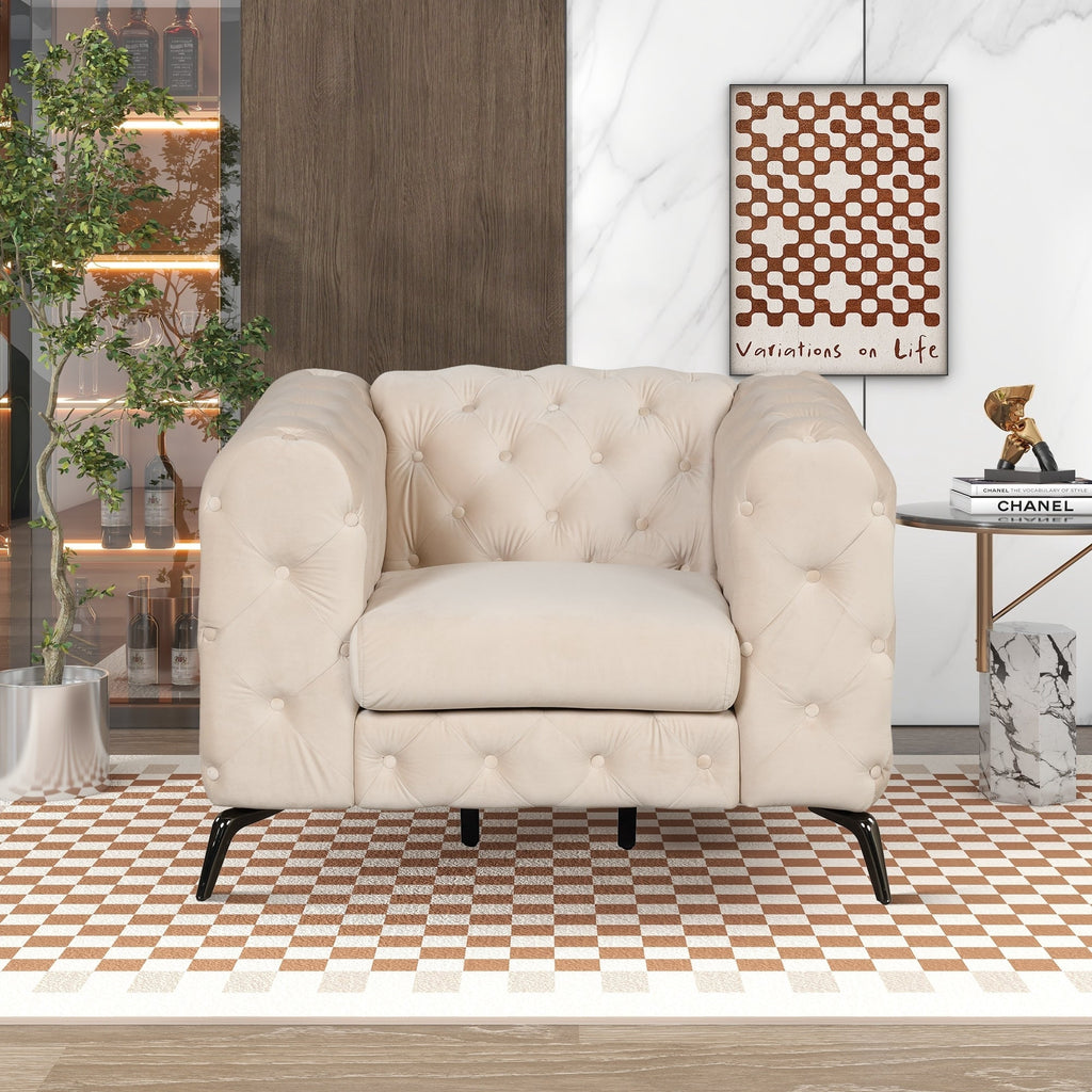 40.5" Velvet Upholstered Accent Sofa, Modern Single Sofa Chair with Button Tufted Back, Modern Single Couch for Living Room, Bedroom, or Small Space, Beige