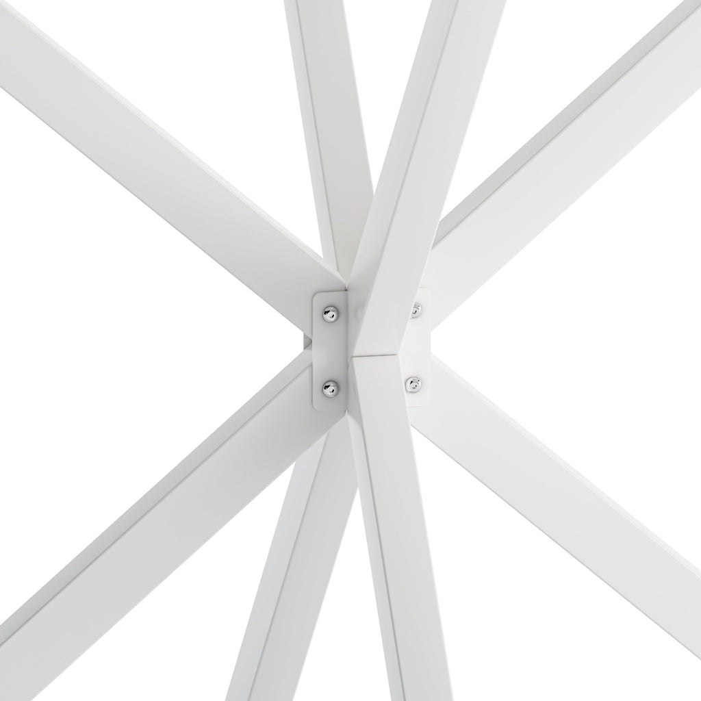 - 2.Sturdy and durable: The table top of this round dining table is made of two table boards spliced together, combined with meticulous craftsmanship and the stability of the metal cross legs, the connection between the accessories is tight, sturdy and durable. The sturdy and finely crafted table is durable and sturdy for years of use.