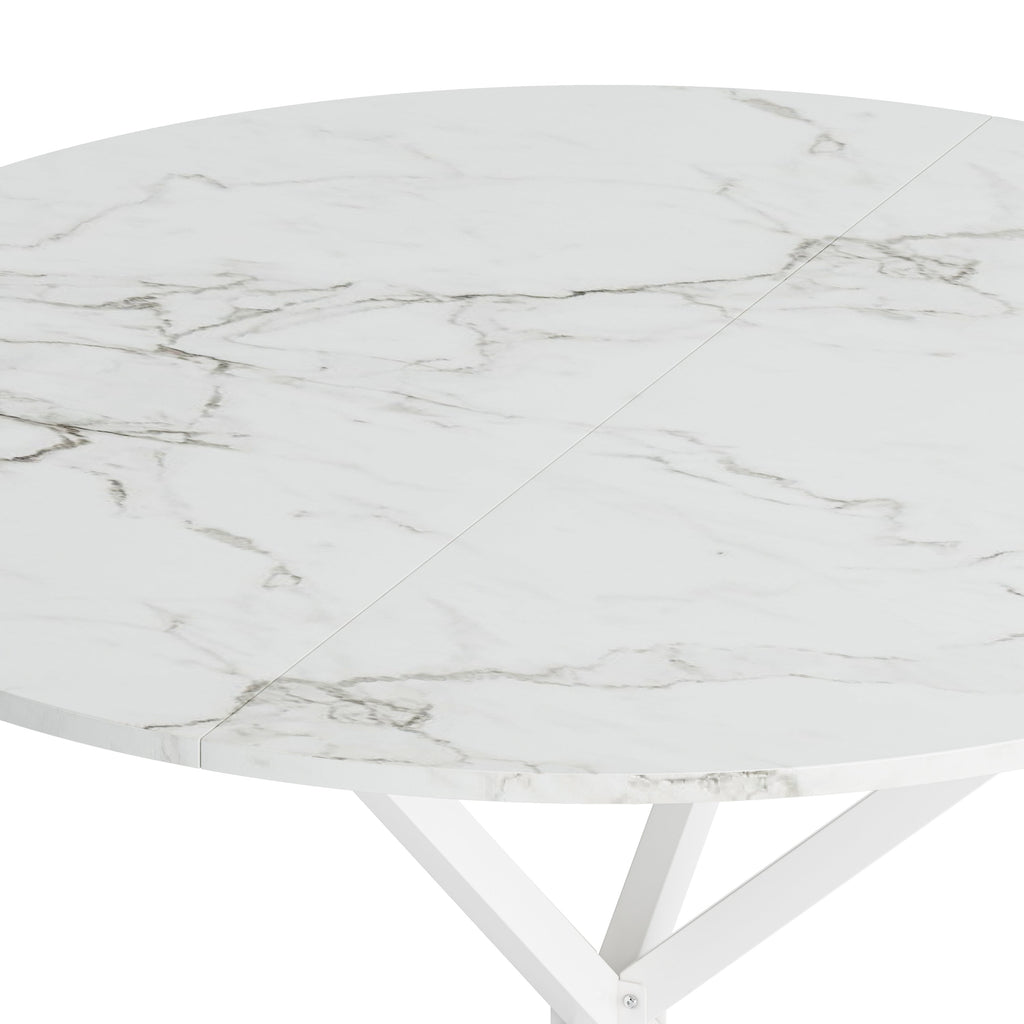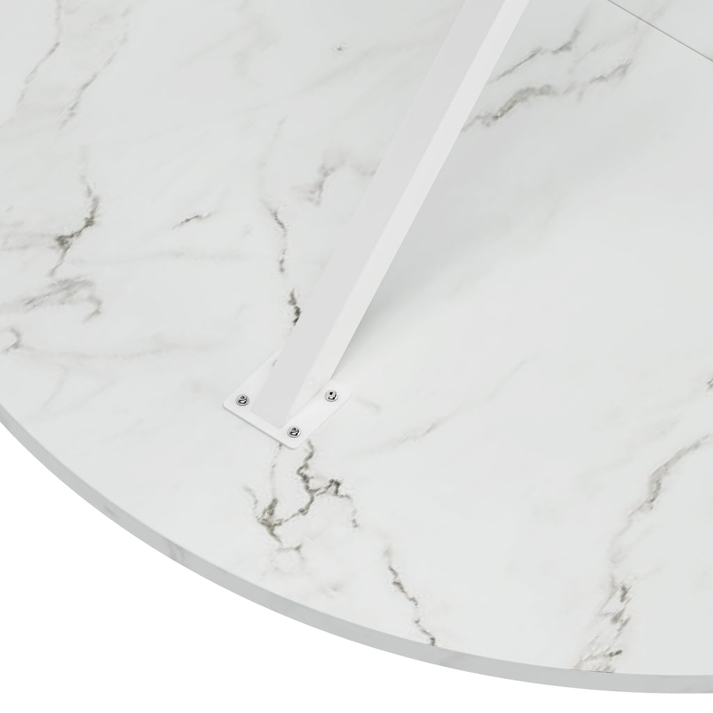- 1.High-quality materials:This white marbled round dining table is made of a combination of high quality MDF table top and high quality metal iron legs, which provides a solid foundation for the modern round dining table, and also allows you to get a better experience when applying the table.