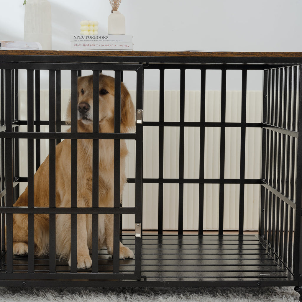 - 【Sturdy Structure with Reliable Material】 Heavy duty frame made from sturdy steel and durable particleboard. All smooth metal bars are strong enough to ensure that your naughty pup can be safe inside. The metal coating and board surface are non-toxic in case it is chewed or licked by the dog.