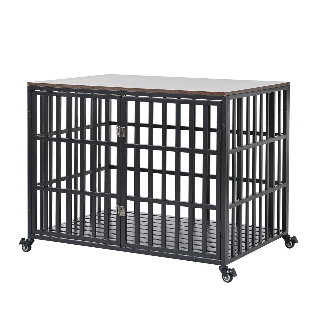 - 【Safety Guaranteed & Mobility 】 Two sturdy latches to prevent the high anxiety dogs from escaping their crates. Thanks to the 4 universal wheels with brakes, you can move the dog kennel from indoor to outdoor easily and keep it stay in place.