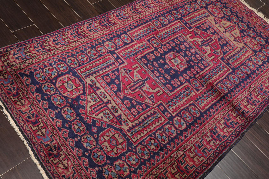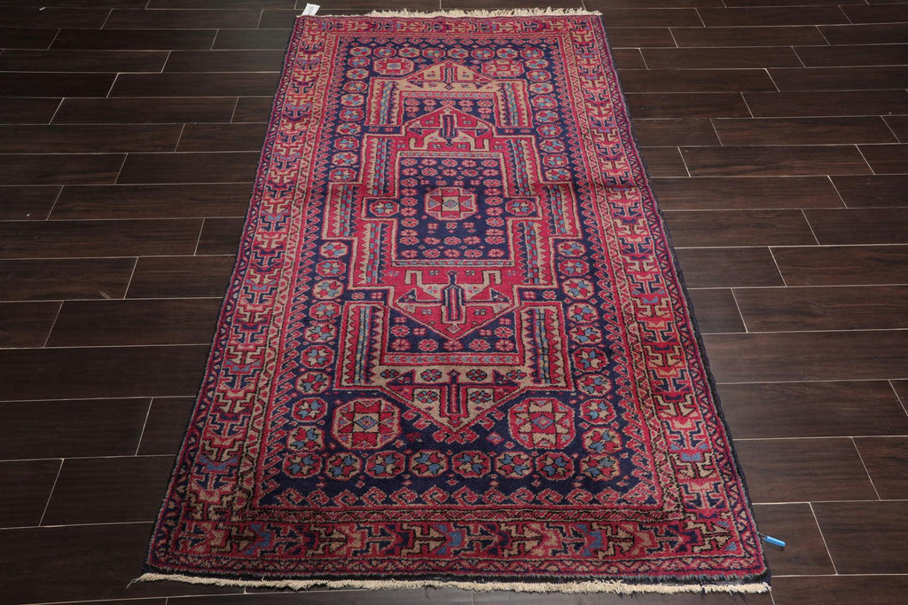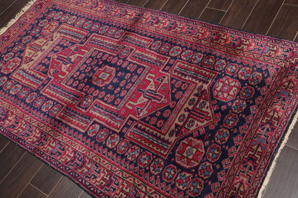 4'2" x 6'11" Antique Hand Knotted Wool Turkish Sparta Oriental Area Rug Navy