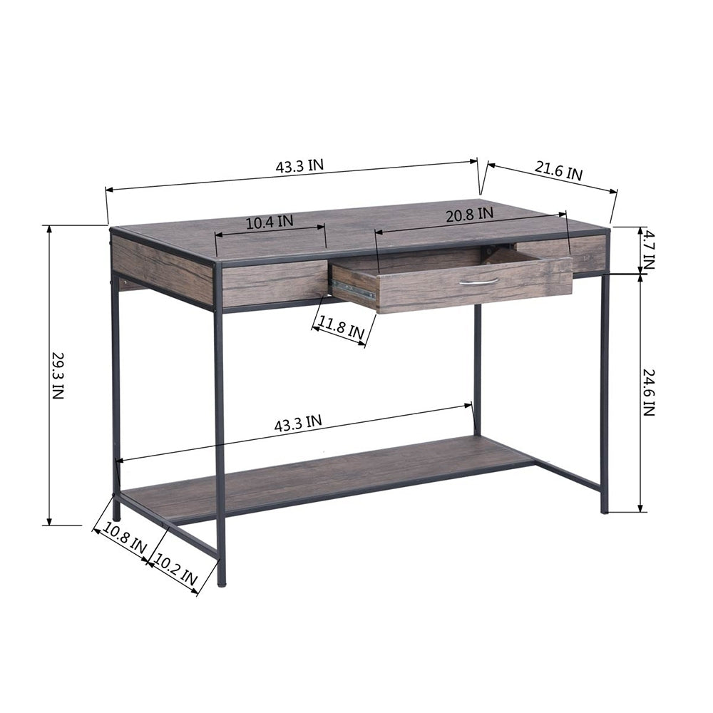 43.3" W x 21.6"D x 29.3" H Computer Desk with One Drawer, Walnut & Black