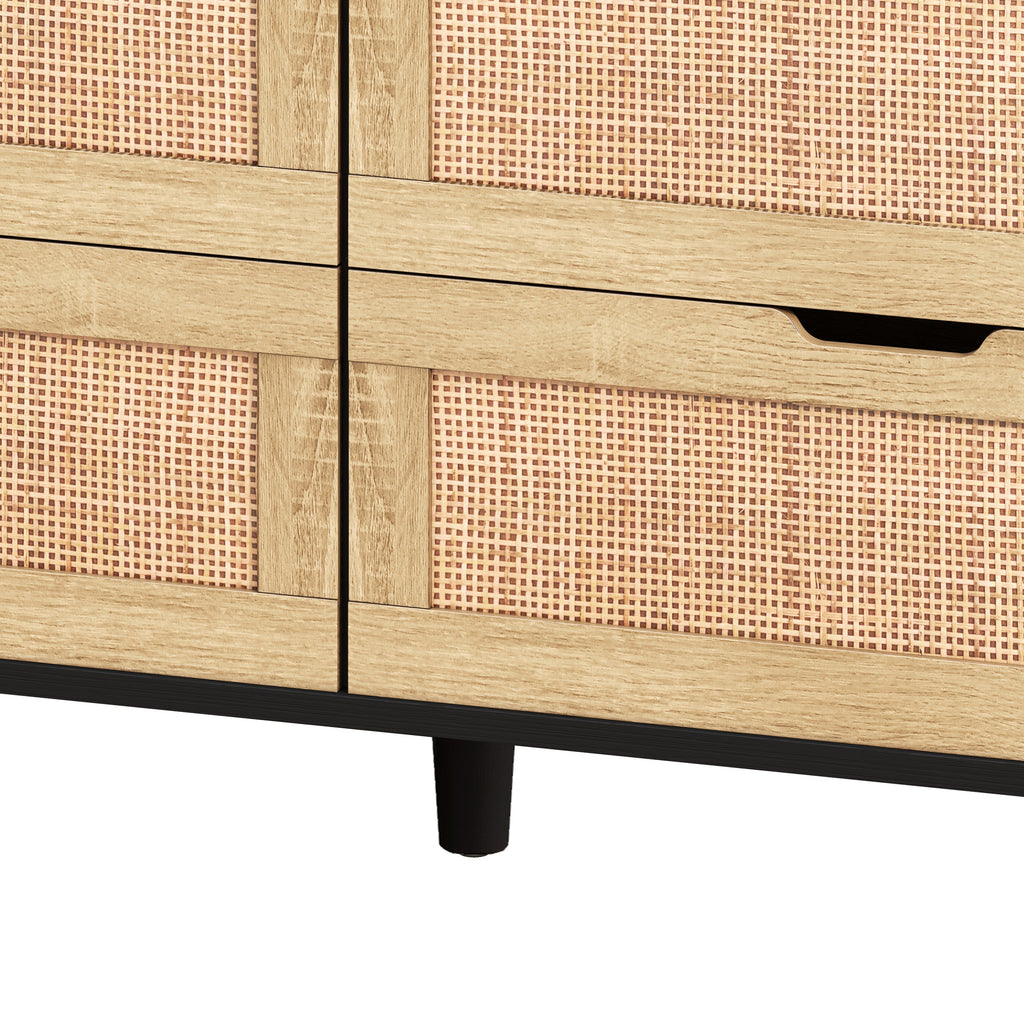 - High quality material:Our wooden dresser is made of high-quality chipboard, and the rattan box of the drawer is environment-friendly and smooth. The smooth guide rail can easily pull out and close the drawer.