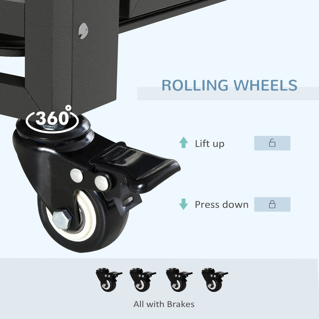 43" Heavy Duty Dog Crate, Strong Steel Foldable Large Dog Crate with 4 Lockable Wheels, Double Doors, Openable Top and Removable Trays for Medium and Large Dogs, Black