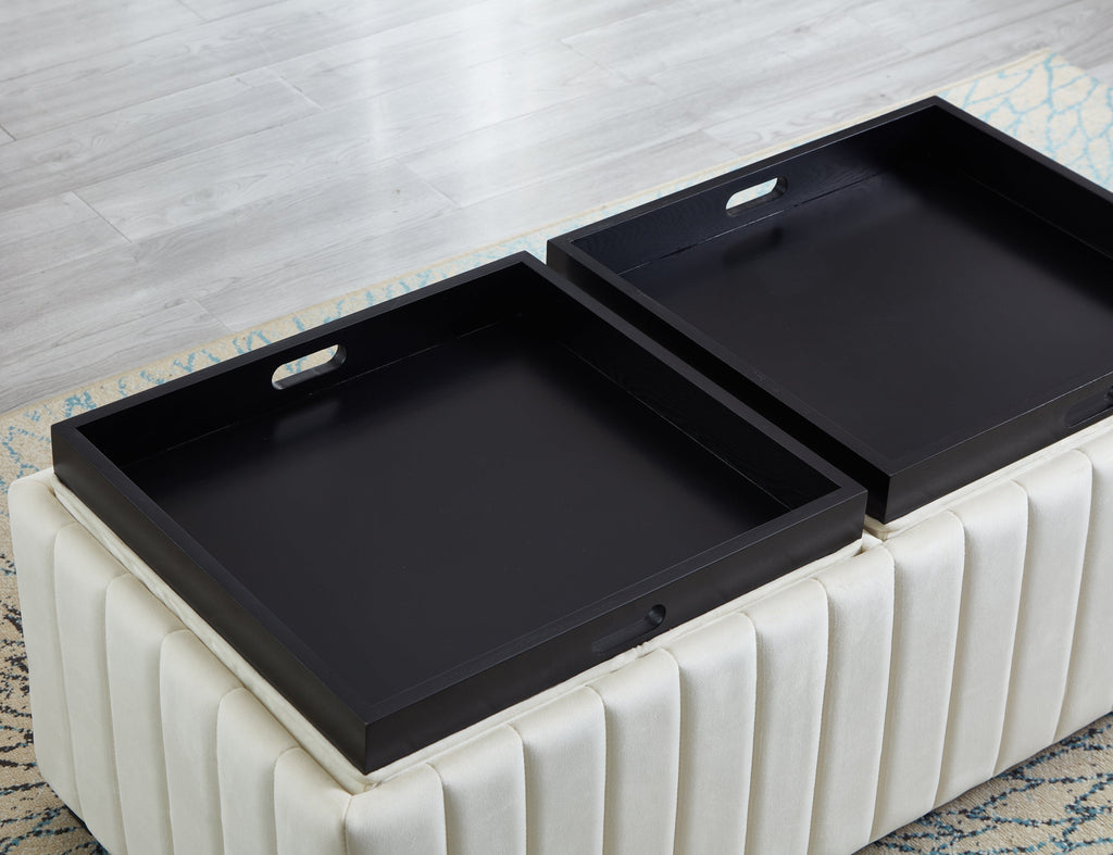 45 inch Wide Contemporary Square CubeStorage Ottoman Bench, Storage Bench with coffee tray,coffee table for Living Room Ottoman foot rest for Bedroom End of Bed, BEIGE velvet fabric in modern SAWING