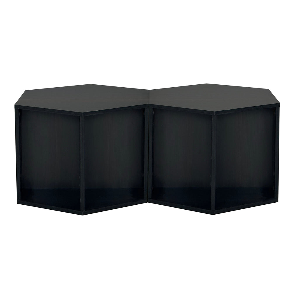 Keep everything within reach when you're lounging on the couch reading a book! The hexagonal coffee table has a storage shelf that is divided into two identical open compartments for a variety of items. You can keep frequently used items on the tabletop for easy access. Once placed upright, the versatile coffee table will turn into a coffee table or nightstand. What's more, it's up to you whether you use them individually or together, horizontally or vertically. As a result, multiple layouts will be created. In addition, the sleek hexagonal design brings freshness to a modern side table. It is delightful to find this hexagonal coffee table in your living room or bedroom.