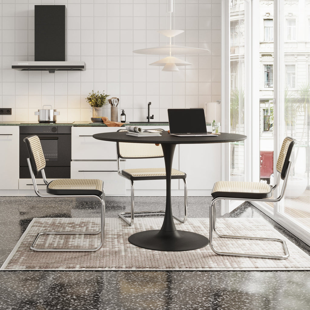 The tabletop is made up of four veneered solid wood grain table boards spliced together, which when viewed from different angles will show a cross color and light refraction effect, as if the tabletop would change color. Wonderful. This round table creates a romantic atmosphere for the two of them. In a small space, you can also add two chairs and invite your friends and family to sit around the round table and chat. Romantic modern round dining table is perfect for small family gatherings or gatherings of friends.