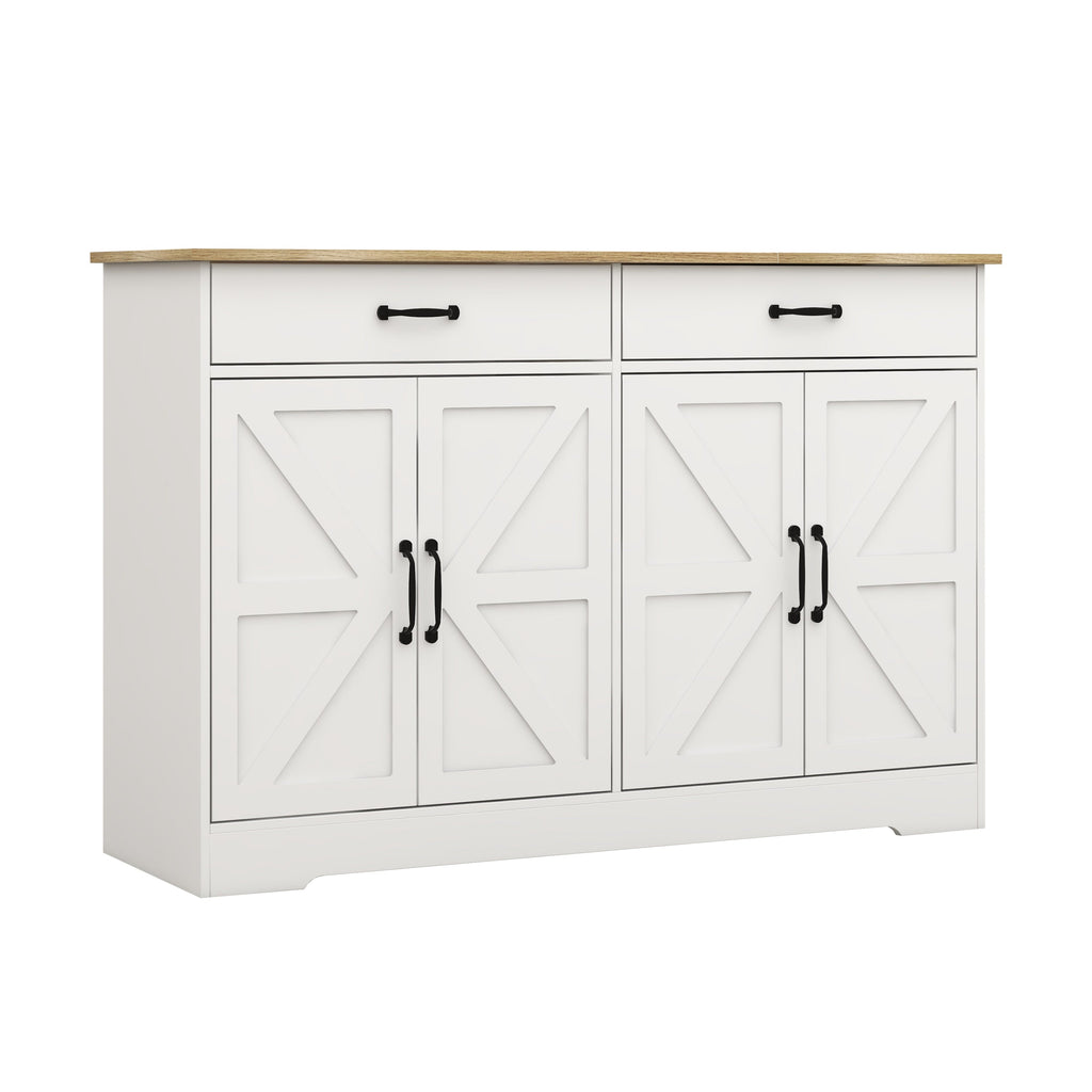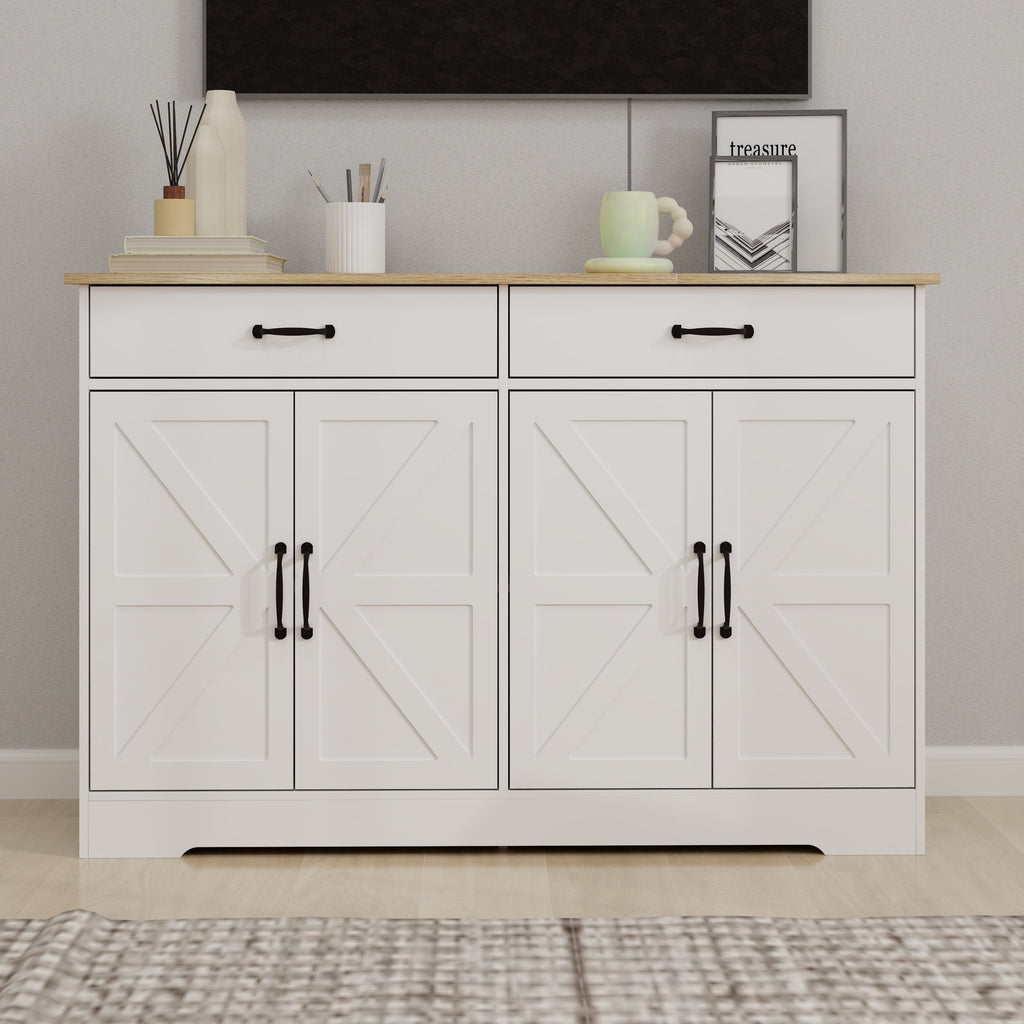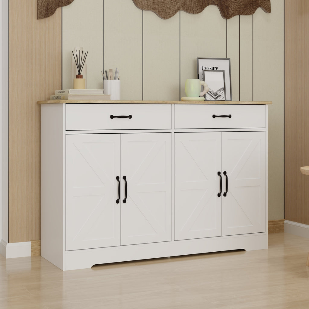 47.95" Farmhouse Buffet Cabinet Storage Sideboard with 2 Drawers and 4 Doors for Dining Living Room Kitchen Cupboard-White