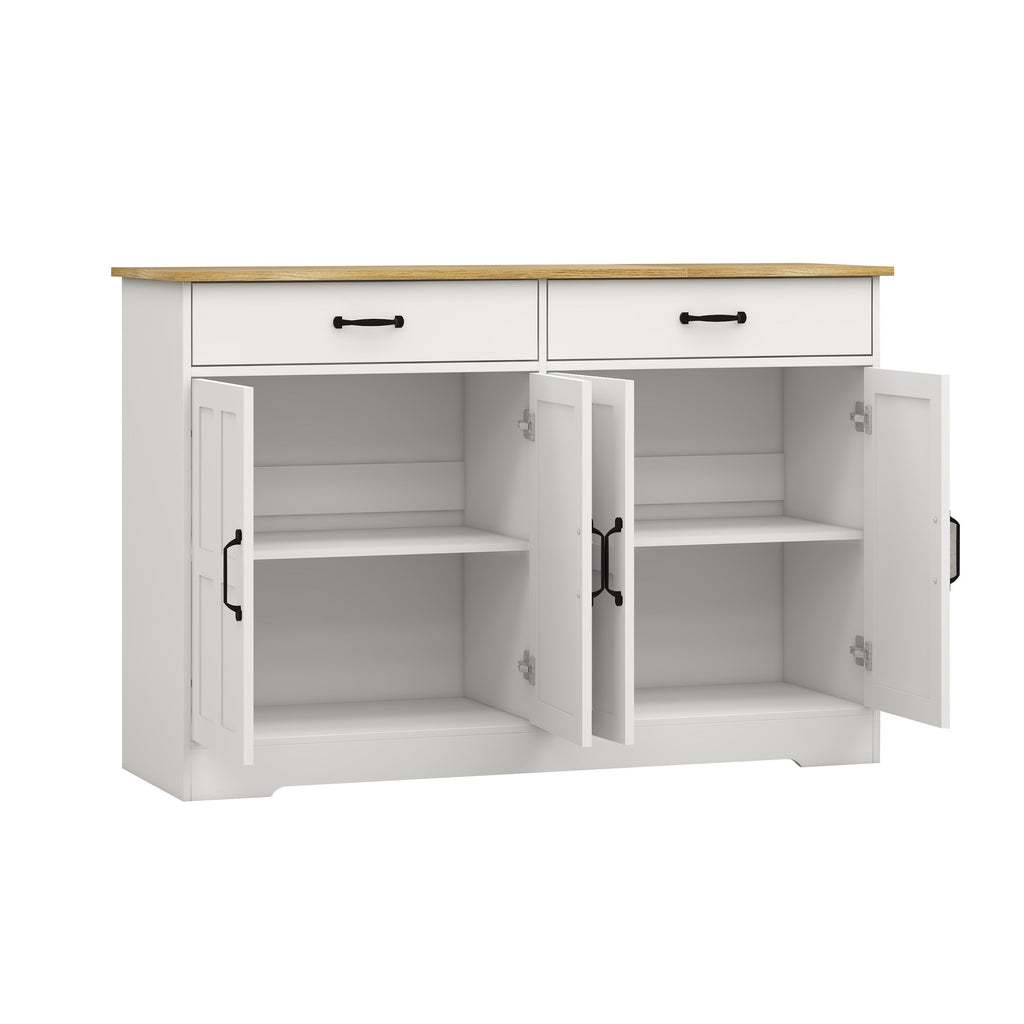 - Large Storage Space: White color cabinet with 2 drawers and 4 doors, 2 shelving space can meet your storage requires perfectly.