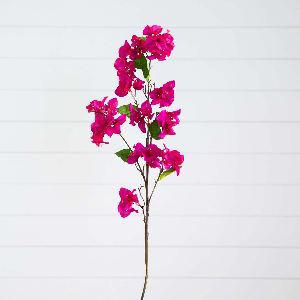 Seeking a standout feature for your space? Some decor pieces are secondary characters, this bougainvillea set of 3 will become the protagonist of your space. Evoking the dreamy Greek summers, their vibrant colors will breathe life into any room, complemented by green leaves that mirror the natural beauty of real bougainvillea. Expertly crafted from premium materials by skilled horticulturists, each stem boasts fully wired branches, offering you the flexibility to shape, trim, or bend them to your design preferences. With an impressive 47in from top to bottom, these stems give your room an everlasting summer vibe. Ideal for an office, living room, closet or bedroom.