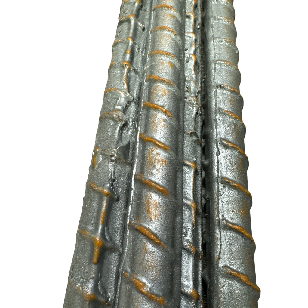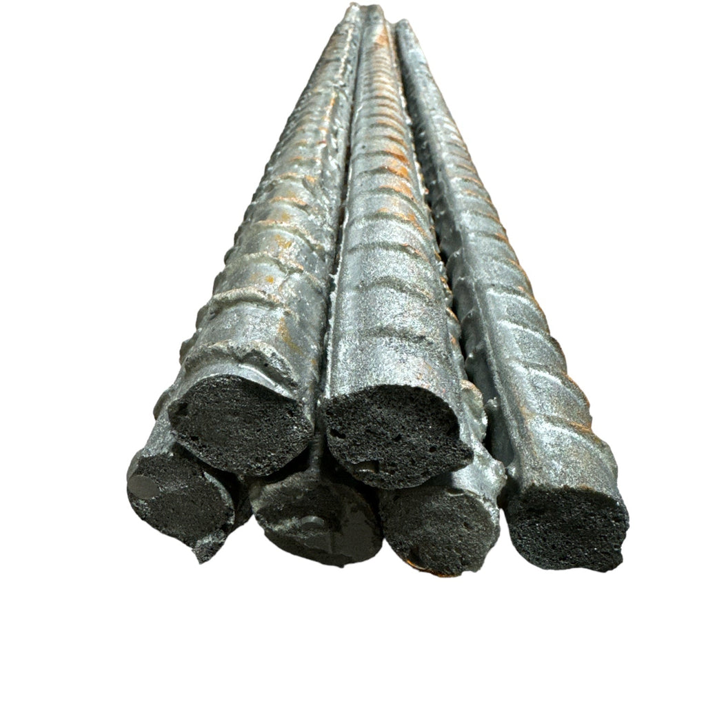 Rebar (short for "reinforcing bar"), also known as reinforcing steel. This steel bar or (when purchased in multiples and arranged in a grid pattern) mesh of steel bars is used as a tension device in reinforced concrete and reinforced masonry structures to strengthen and hold the concrete in place. Rebar's surface is patterned to form a better bond with the concrete. This rebar prop is 48" long section of simulated rebar, molded from the real thing. With a metal wire inside for rigidity, they are covered by the molded outer foam rubber surface which contains great detail and realistic hand painted effects.
