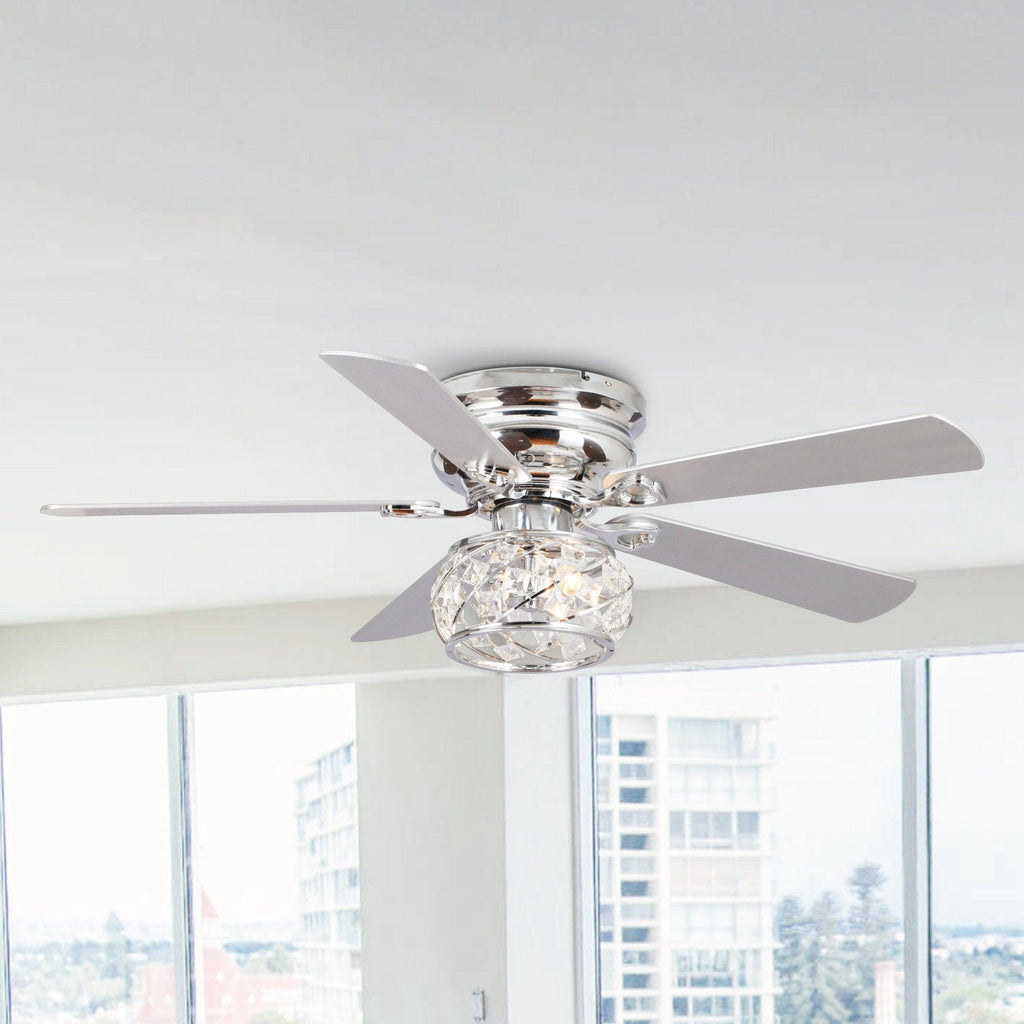 48" Modern Chrome Flush Mount Reversible Crystal Ceiling Fan with Lighting and Remote Control