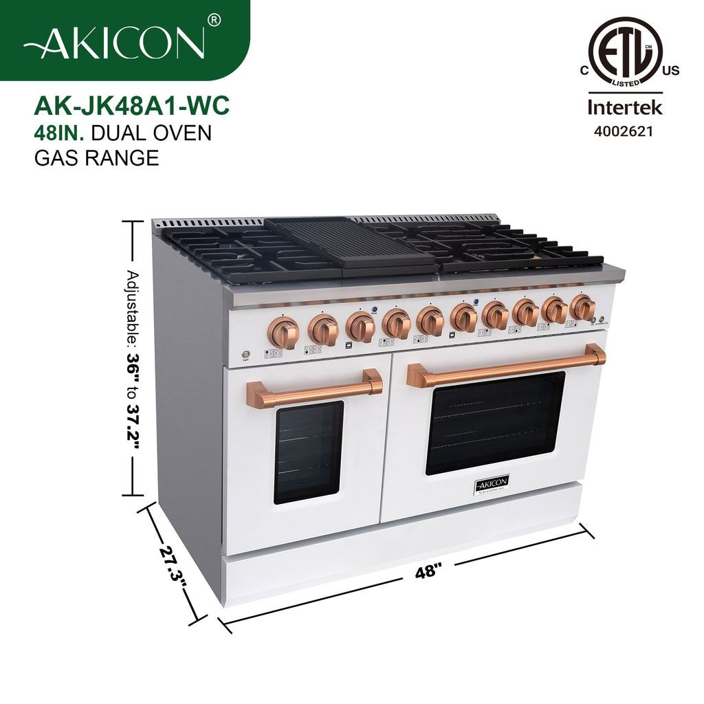 48" Slide-in Freestanding Professional Style Gas Range with 6.7 Cu. Ft. Oven, 8 Burners, AK-JK48A1-W